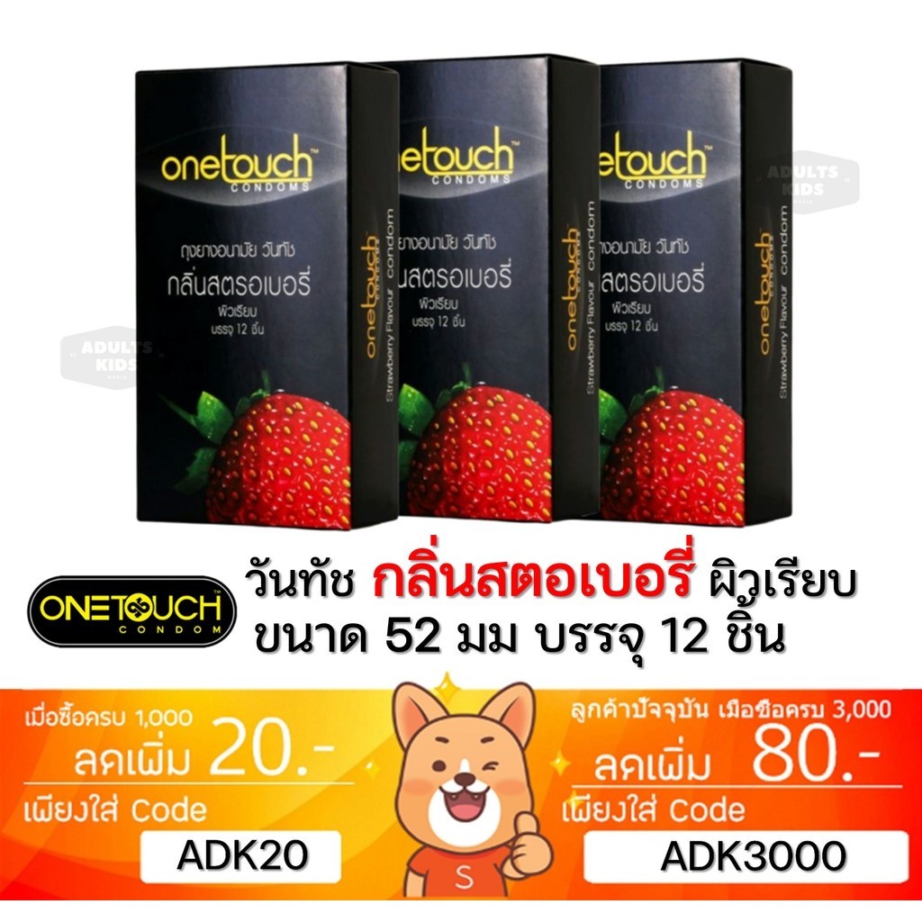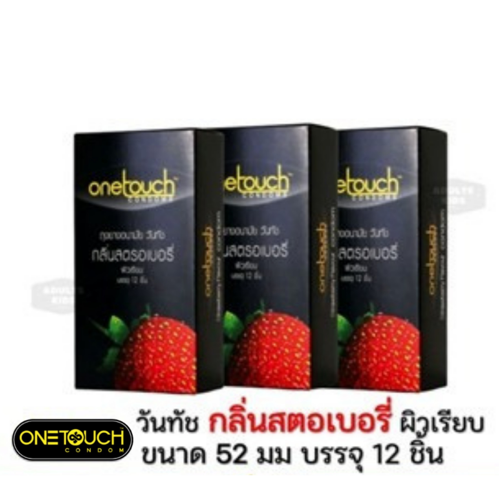 ลดเพิ่ม 30% 🔥 ถุงยางอนามัย Onetouch Strawberry วันทัช สตรอเบอรี่ ขนาด 52 มม. จำนวน 3กล่อง บรรจุ 12ชิ้น/กล่อง