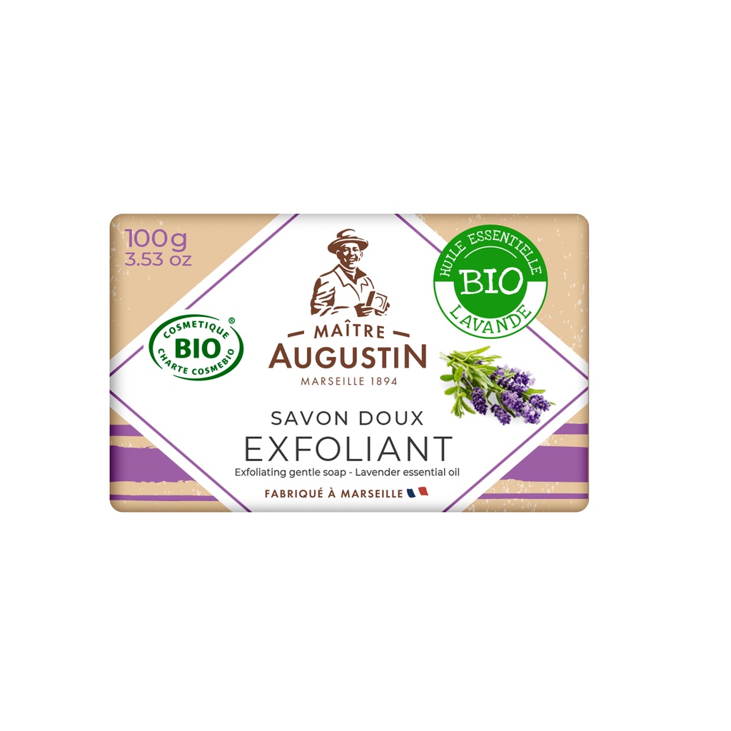 Maitre Augustin Exfoliating gentle soap Lavender essential oil สบู่ขัดผิวออแ กนิค ลาเวนเดอร์ เอสเซนเชี่ยลออย (100 g)