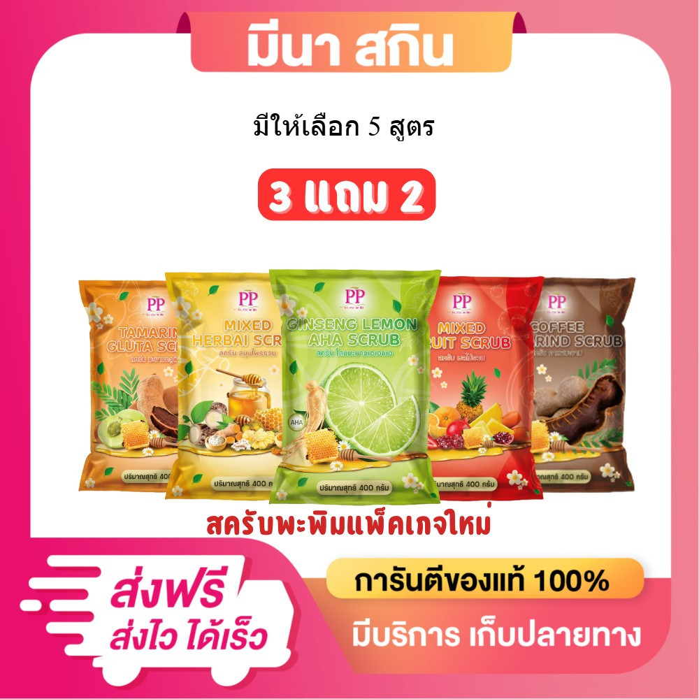(3 แถม 2) พะพิมสครับน้ำนมเนื้อสมุนไพ ร 1 ถุง ขนาด 400 กรัม แพ็คเก็จใหม่