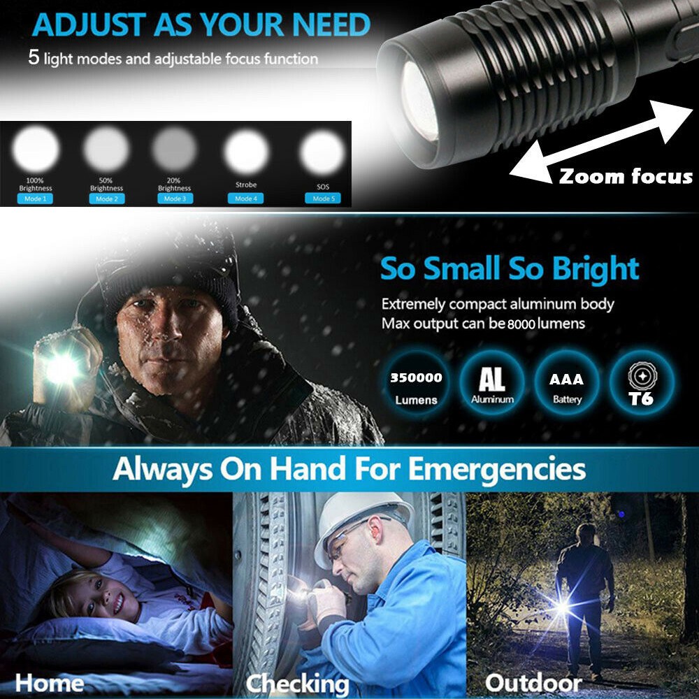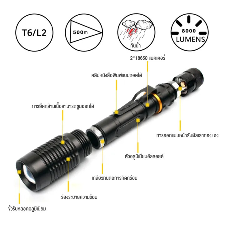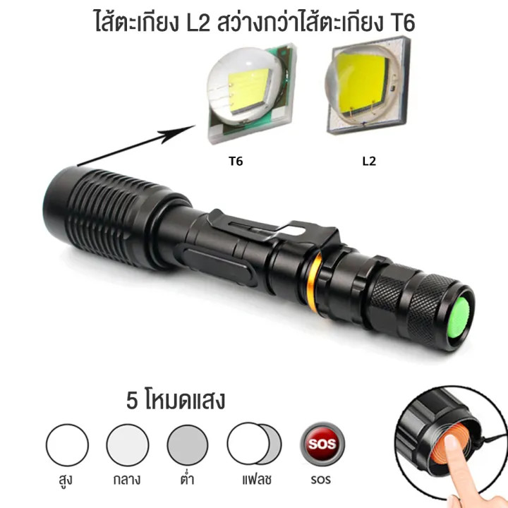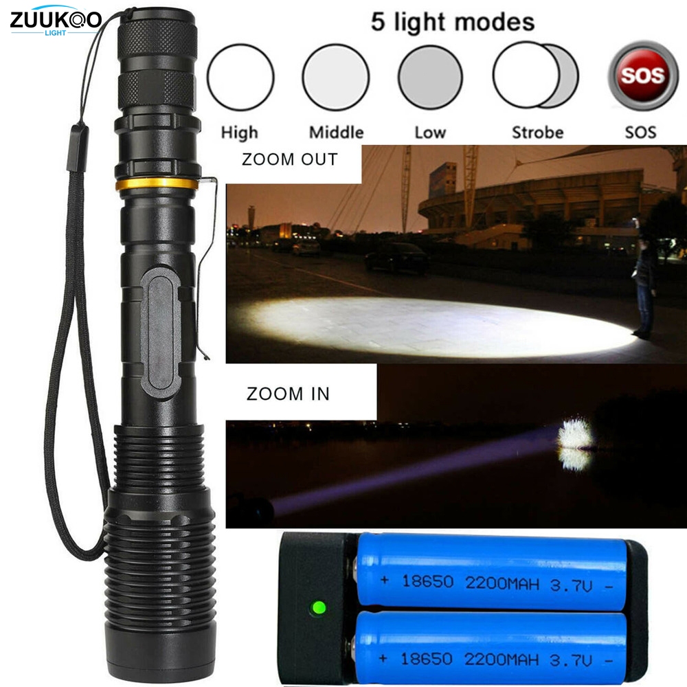 ZUUKOO ไฟฉายแรงสูง ไฟฉายแบบชาร์จ 350000lm ไฟซูเปอร์ซูมไฟฉายยุทธวิธี T6 LED ไฟฉายแรงสูง แท้ ไฟฉายเเรงสู