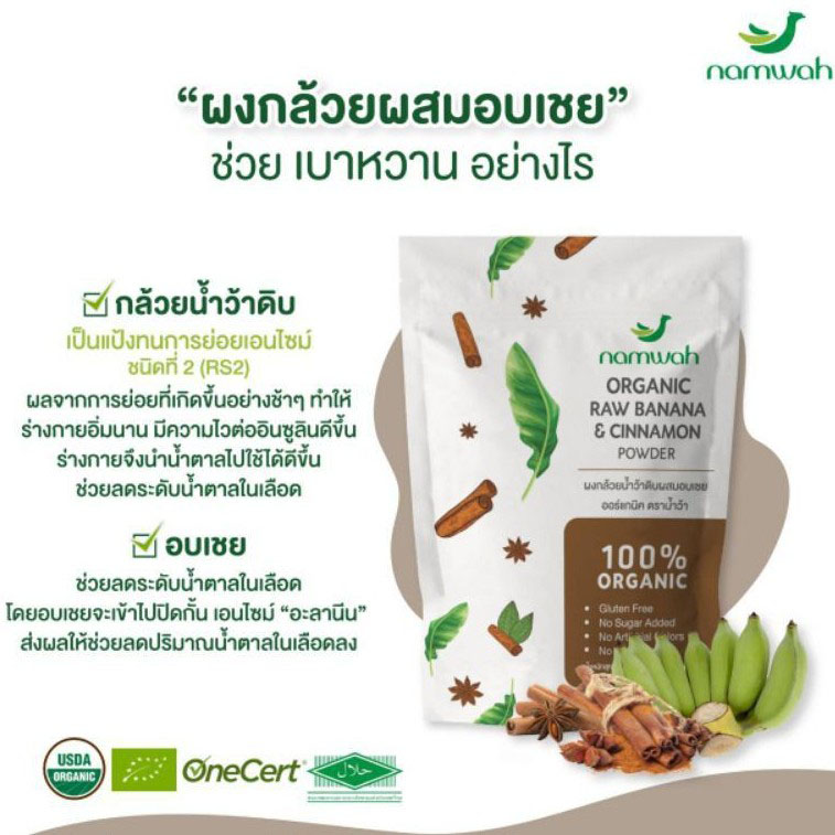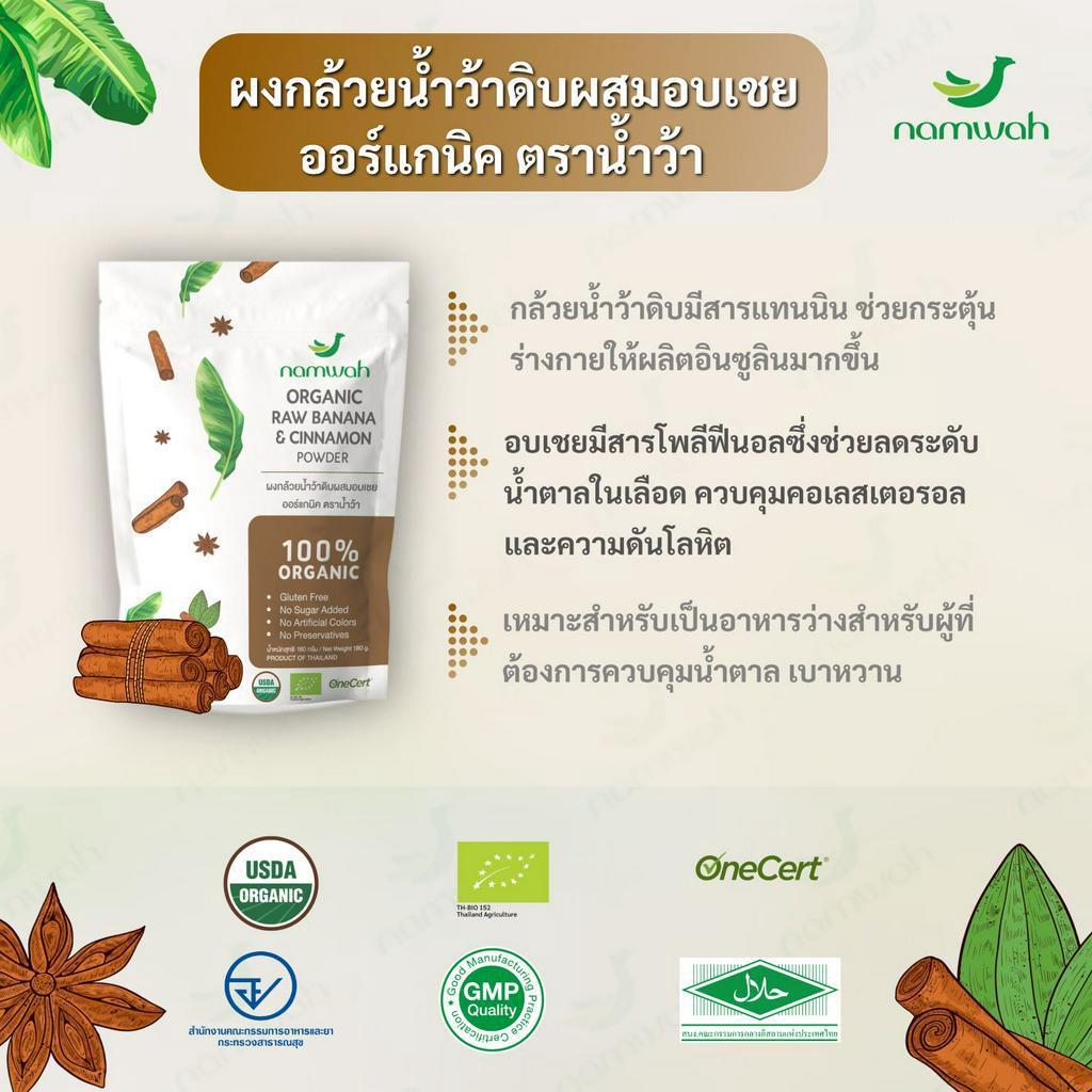 Namwah Organic Raw Banana and Cinnamon Powder ผงกล้วยน้ำว้าดิบผสมอบเชยออร์แกนิค ตราน้ำว้า (180g)