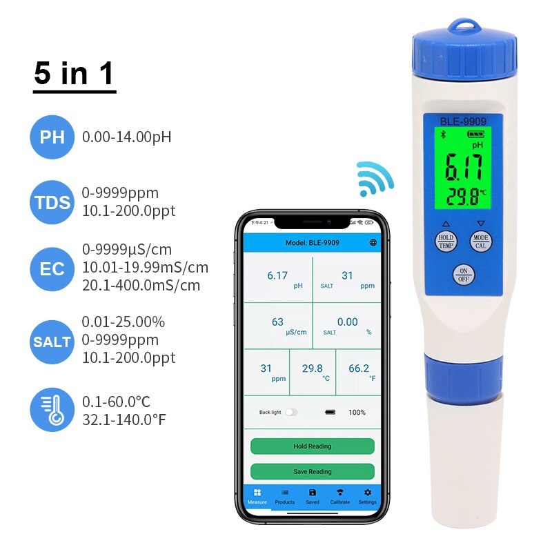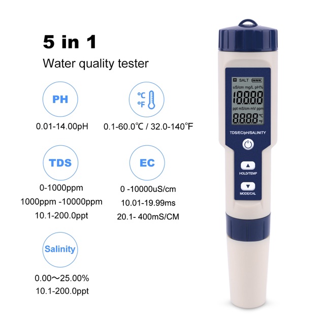 ของแท้🔥5in1🔥 EC TDS PH SALT TEMP meter เครื่องวัดคุณภาพน้ำ เครื่องวัดสภาพน้ำ วัดความเค็ม water quality tester meter