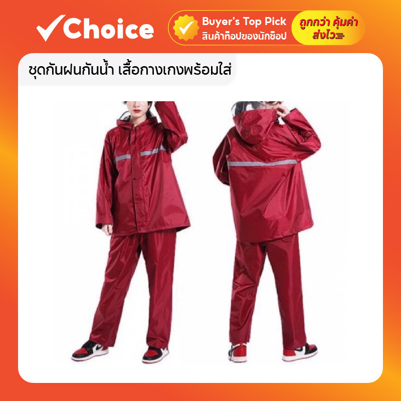 ชุดกันฝนกันน้ำ เสื้อกางเกงพร้อมใส่ แถบสะท้อนแสง สีแดง รุ่น YY (3XL)