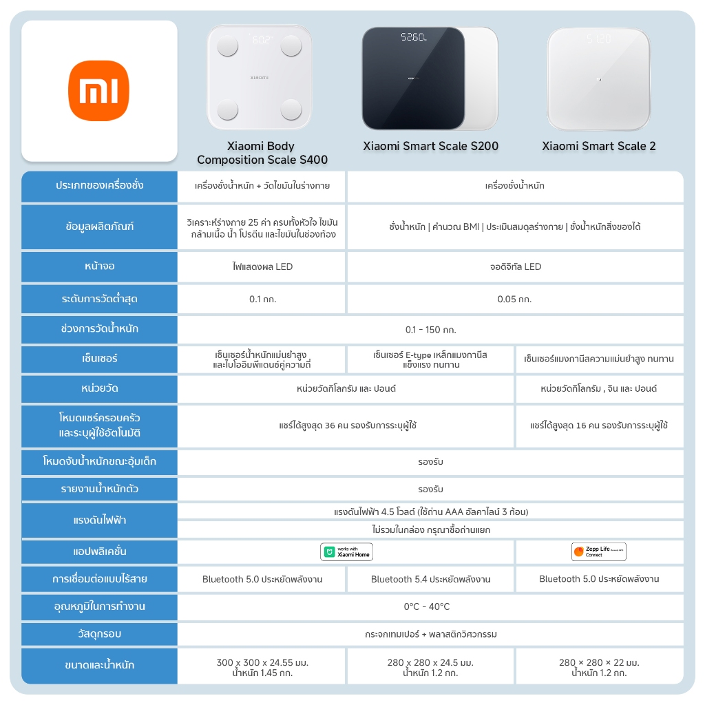 Xiaomi Body Composition Scale S400 เครื่องชั่งน้ำหนัก | 25 ตัวชี้วัดสุขภาพ | รับประกัน 1ปี