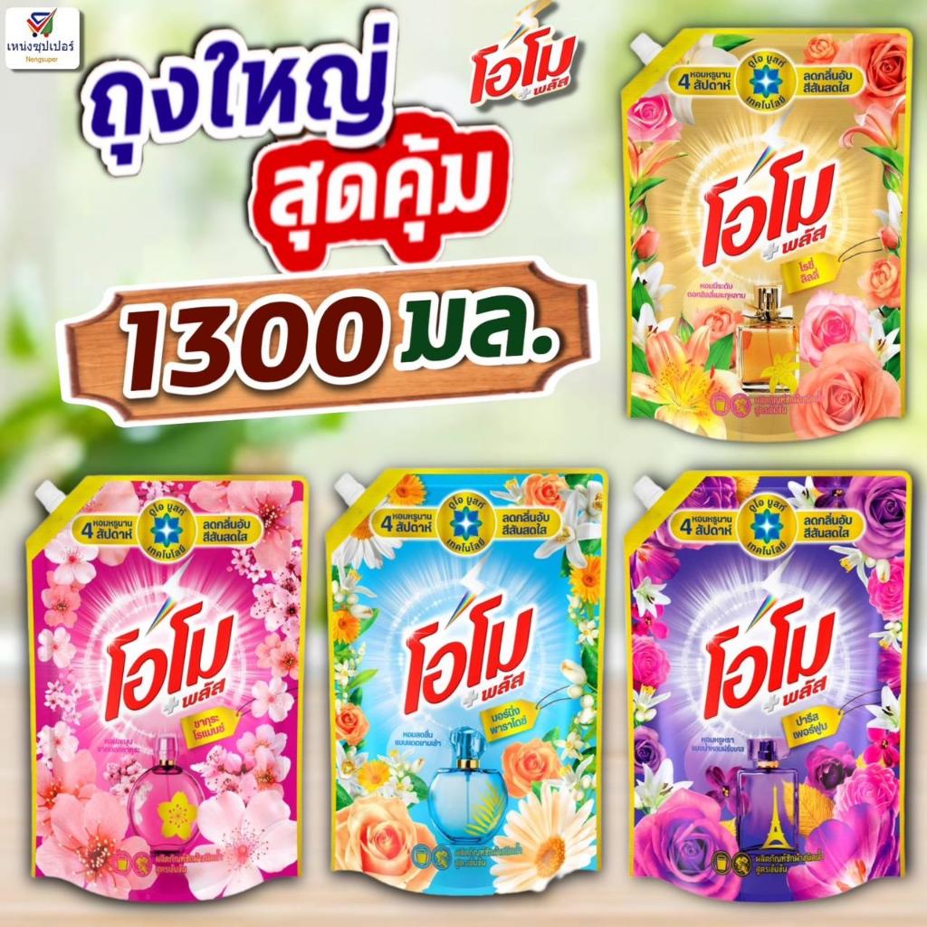 ถุงใหญ่สุดคุ้ม!! 1300 มล. โอโม่ พลัส น้ำยาซักผ้าสูตรเข้มข้น (Omo Plus) 1300 ml.