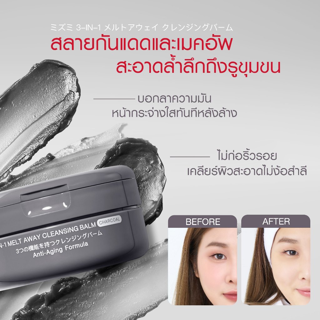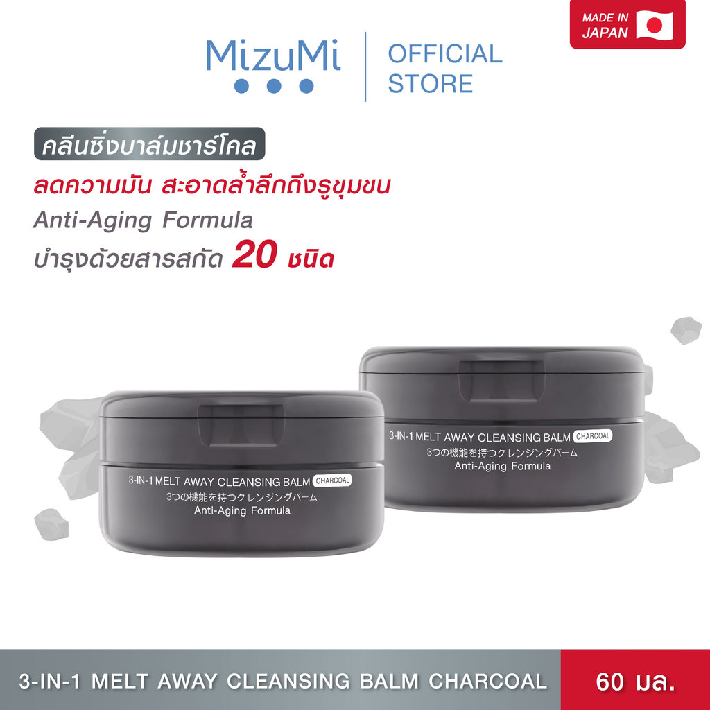 [แพ็คคู่] MizuMi 3-In-1 Melt Away Cleansing Balm Charcoal 60ml คลีนซิ่งบาล์มสูตรชาร์โคล ล้างเมคอัพกันน้ำ ลดโอกาสเกิดสิว