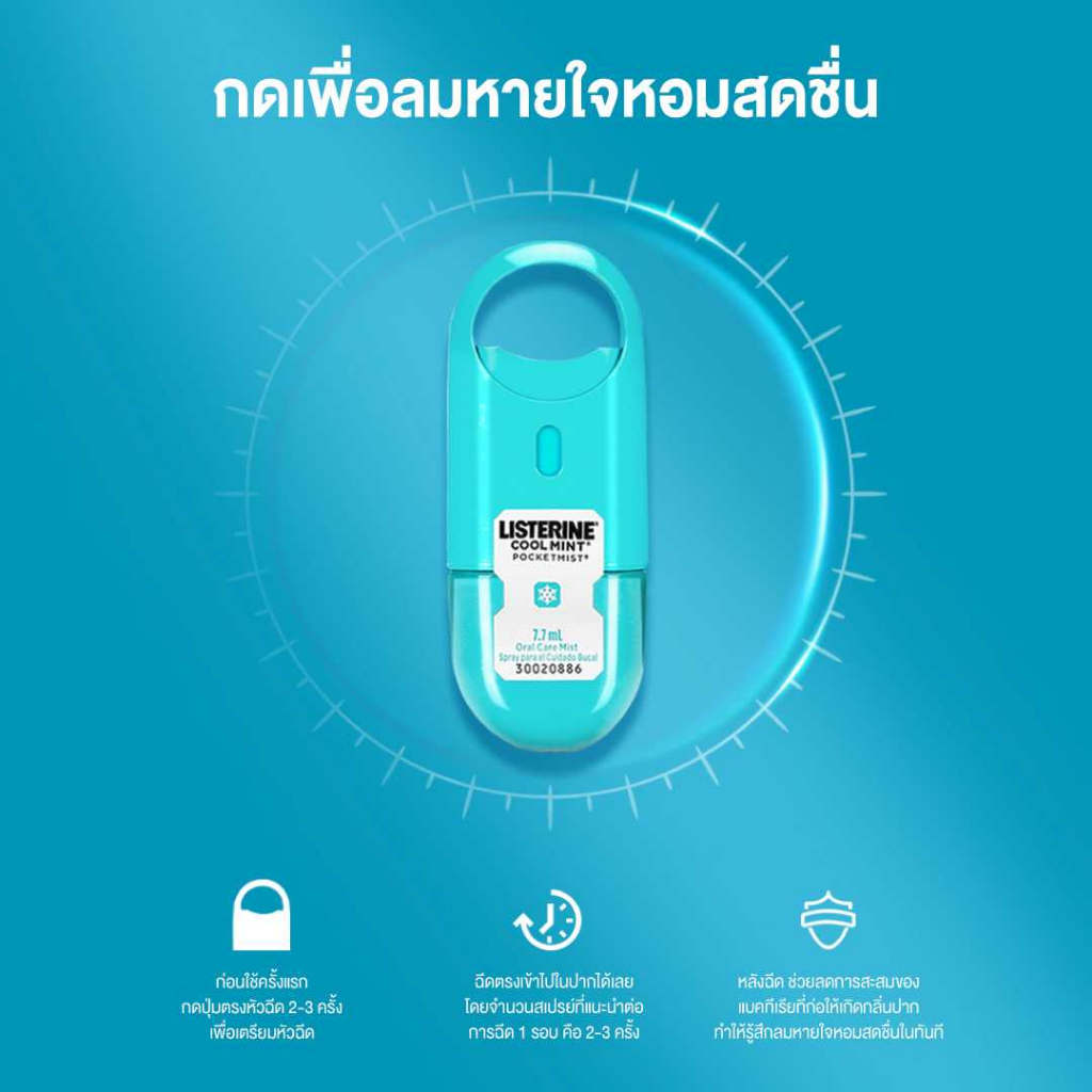 สเปร์ยระงับกลิ่นปาก ลิสเตอรีน พ็อกเก็ต มิสท์ คูลมิ้นต์ 7.7 มล./Listerine Mouthspray Pocketmist Cool Mint 7.7 ml.