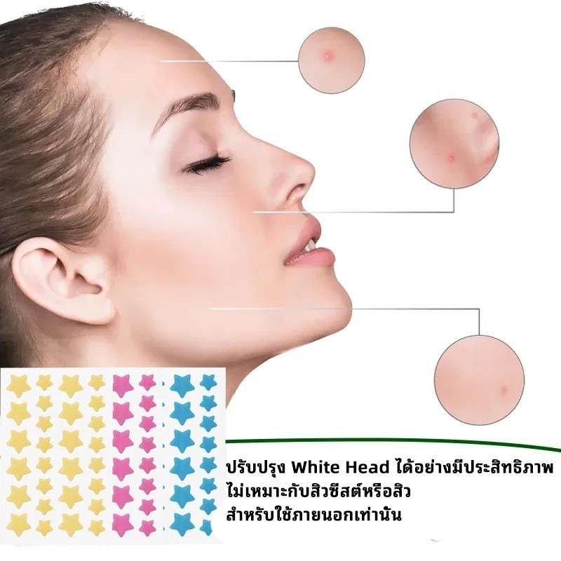 แผ่นแปะสิว แผ่นแปะรักษาสิว แผ่นสิ ว แผ่นแปะดูดสิว แผ่นดูดสิว แผ่นสติกเกอร์แปะสิว Acne Patches รูปดาวน่ารัก หลากสีสัน 7 สี