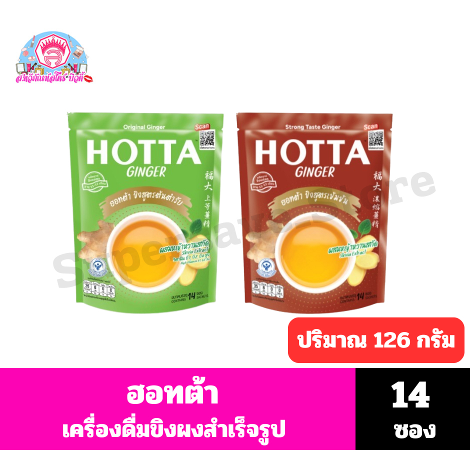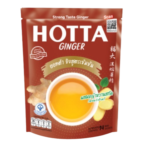 ฮอทต้า เครื่องดื่มขิงผงสำเร็จรูป สูตรผสมหญ้าหวานสกัด *//*ปริมาณ 126 กรัม/14ซอง*//*