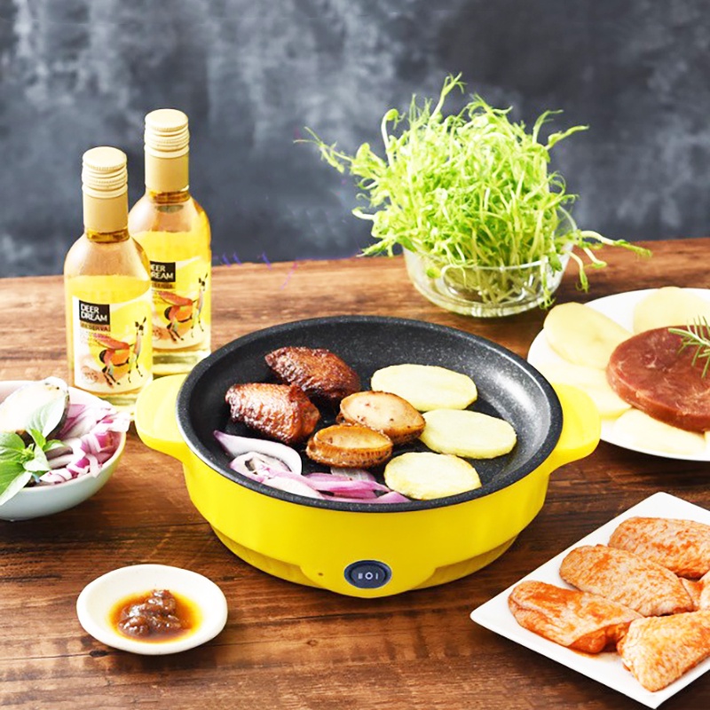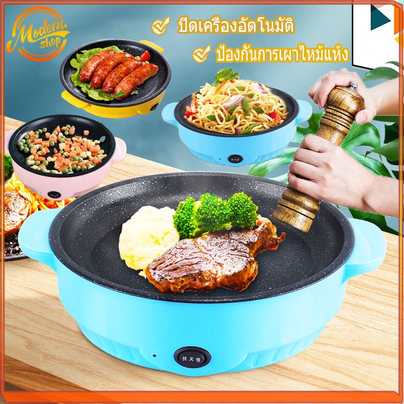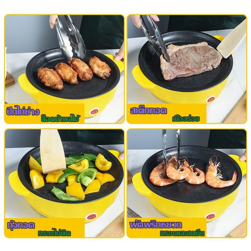 หม้อไฟฟ้า กะทะไฟฟ้า พร้อมเคลือบสารกันติด ทอด ย่าง ผัด กระท อเนกประสงค์กระทะไฟฟ้า กระทะไฟฟ้าจิ๋ว แตนเลสคงทน ใช้งานดี 22cm