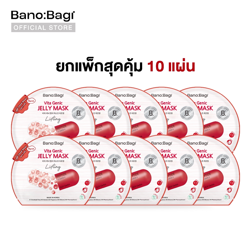 (ยกแพ็กสุดคุ้ม 10 แผ่น) BANOBAGI Vita Genic Jelly Mask - Lifting บาโนบากิ เจลลี่มาส์กสูตร ลดริ้วรอย ให้ผิวตึงกระชับ เซ็ต