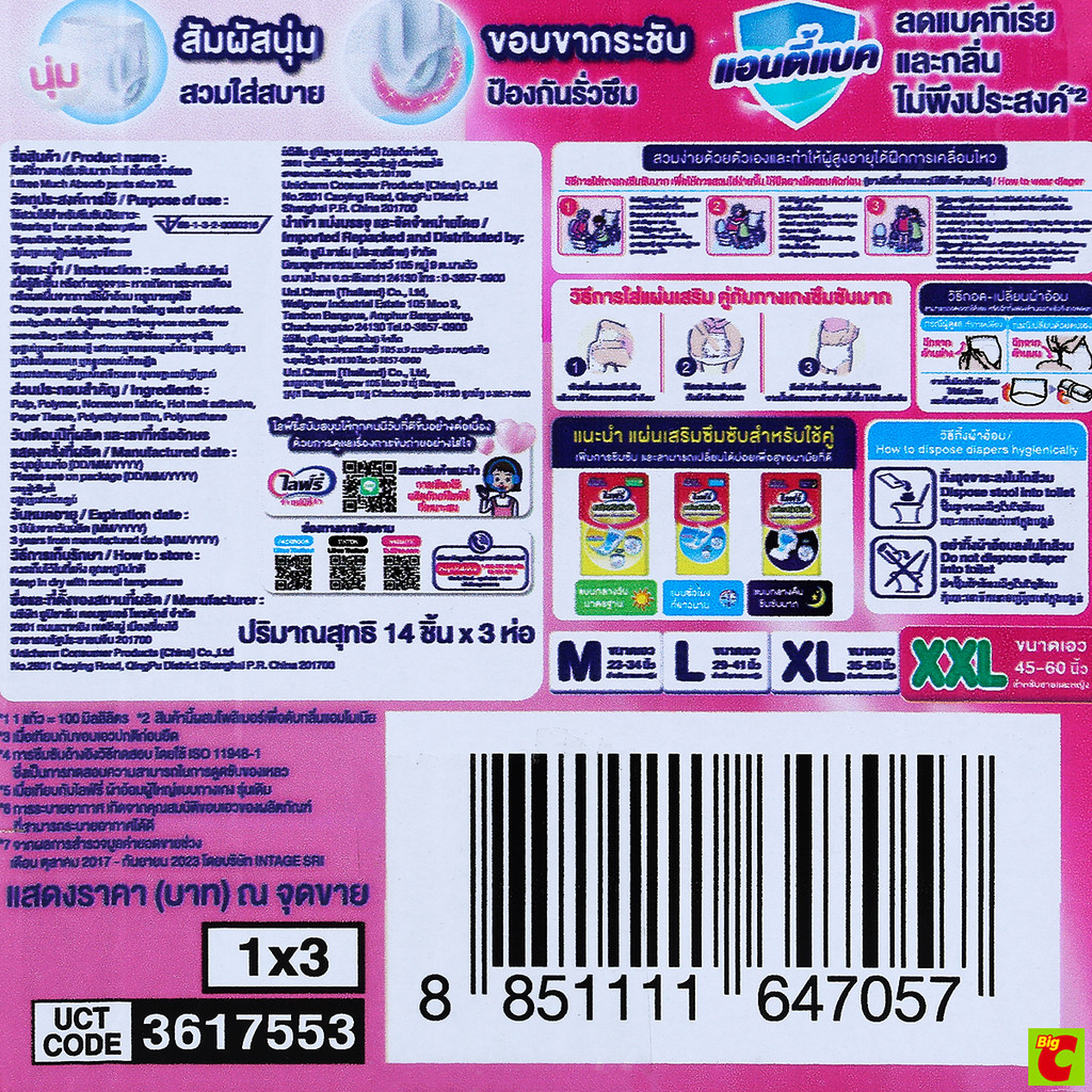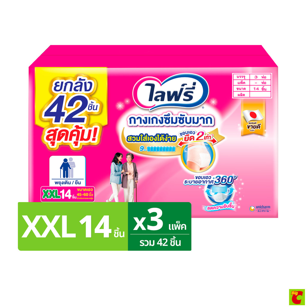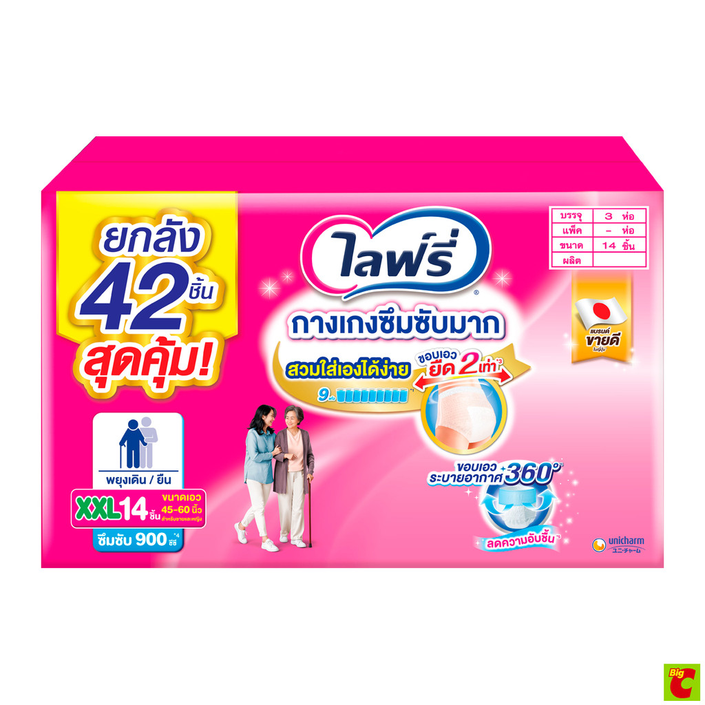 ไลฟ์รี่ กางเกงซึมซับมาก ขนาด XXL 14 ชิ้น x 3 แพ็ค