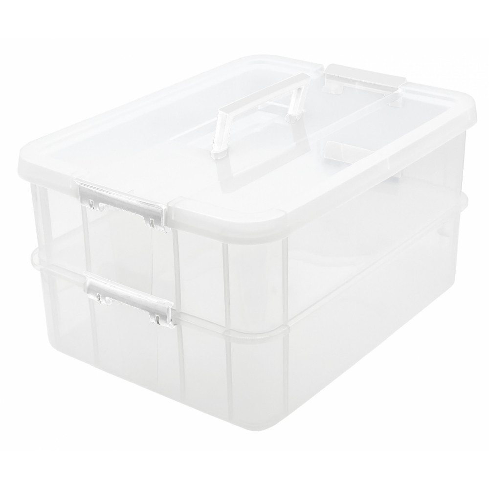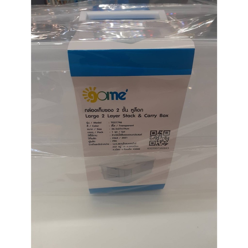 GlobalHouse GOME กล่องเก็บของ 2 ชั้น หูล็อก TG51746 ขนาด 36.5x27x19 ซม. สีใส สินค้าของแท้คุณภาพดี