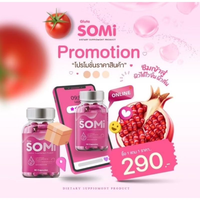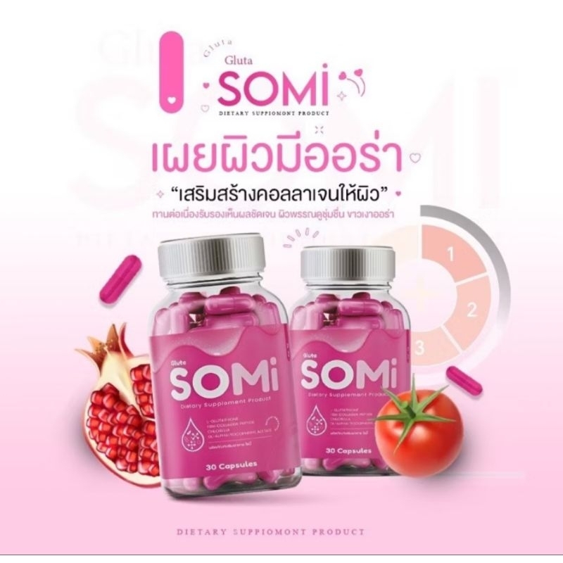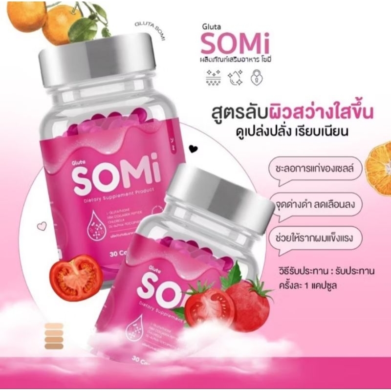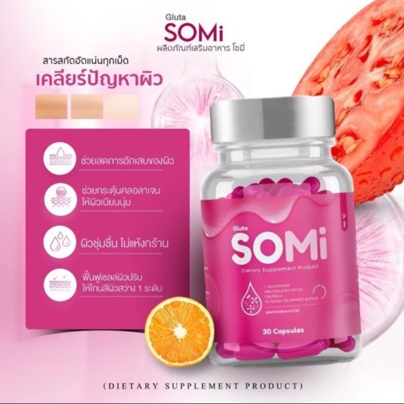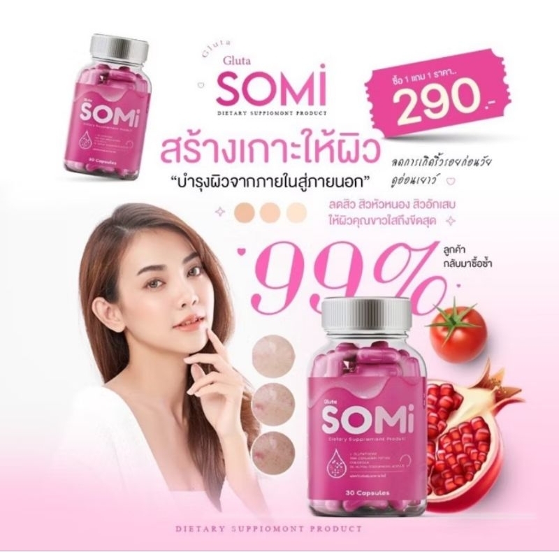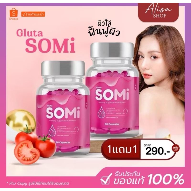 ส่งฟรี/มีไลฟ์ (1 แถม1 ) Gluta SOMi กลูต้าโซมี่ ช่วยให้ผิวกระจ่างใส รูขุมขนกระชับ ผิวเรียบเนียน