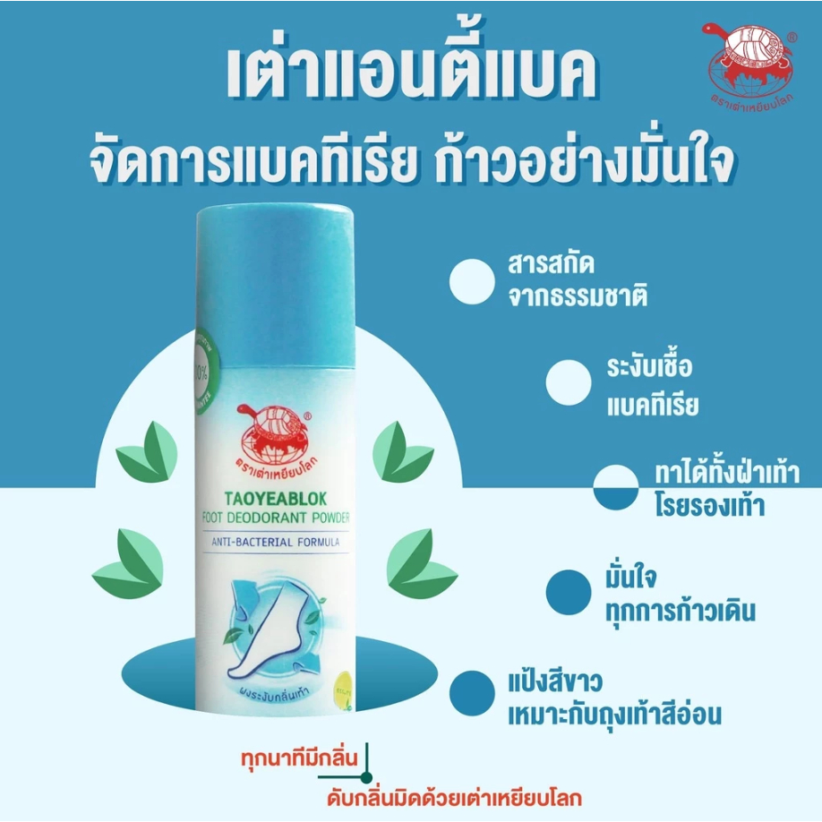 NEW TAOYEABLOK FOOT DEODORANT POWDER : เต่าเหยียบโลก แป้งทาระงับกลิ่นเท้า ผงระงับกลิ่นเท้า
