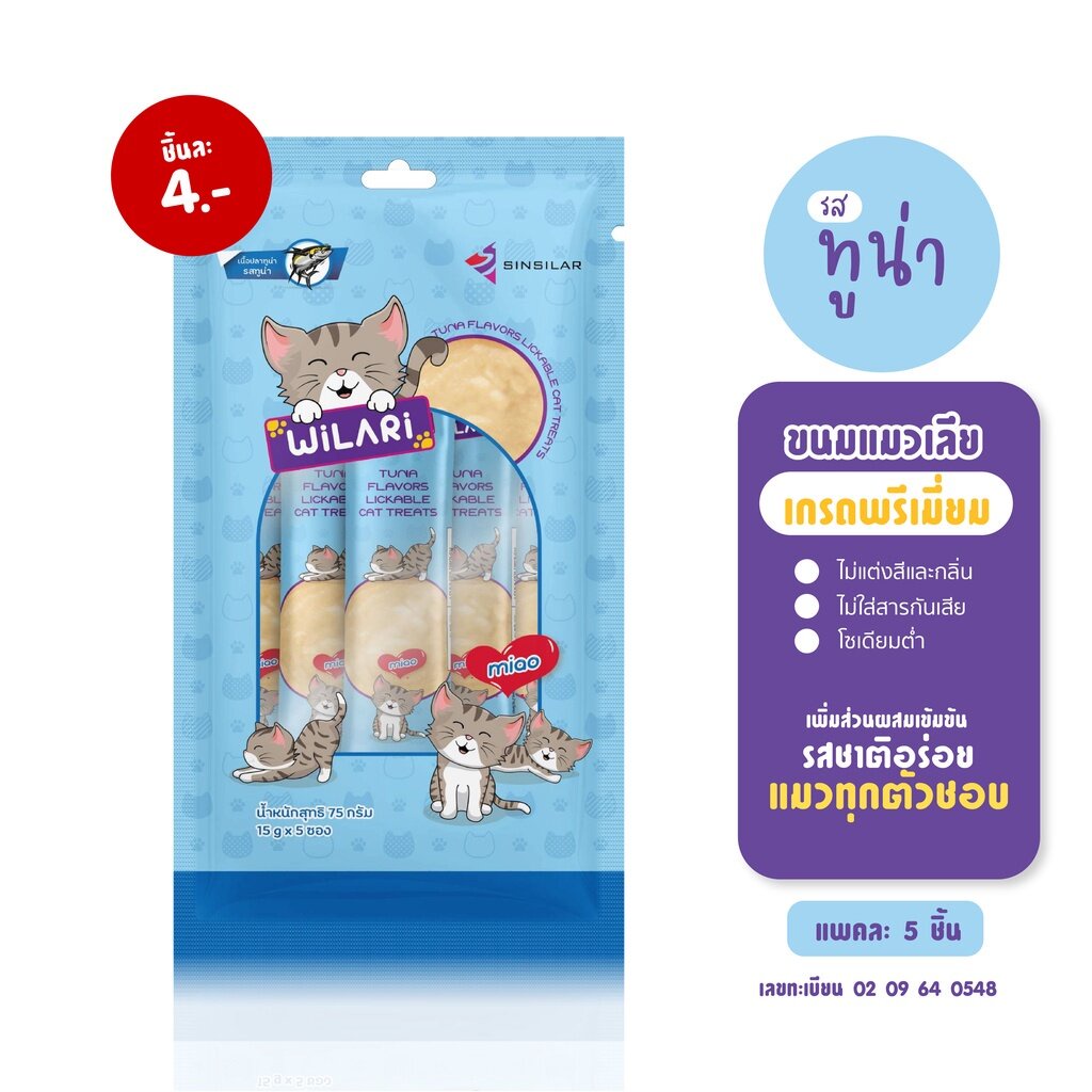 Wilari ขนมแมวเลียเกรดพรีเมี่ยม แพ็ค 5 ซอง รสทูน่า ทูน่าเน้นๆ แมวทุกตัวชอบ