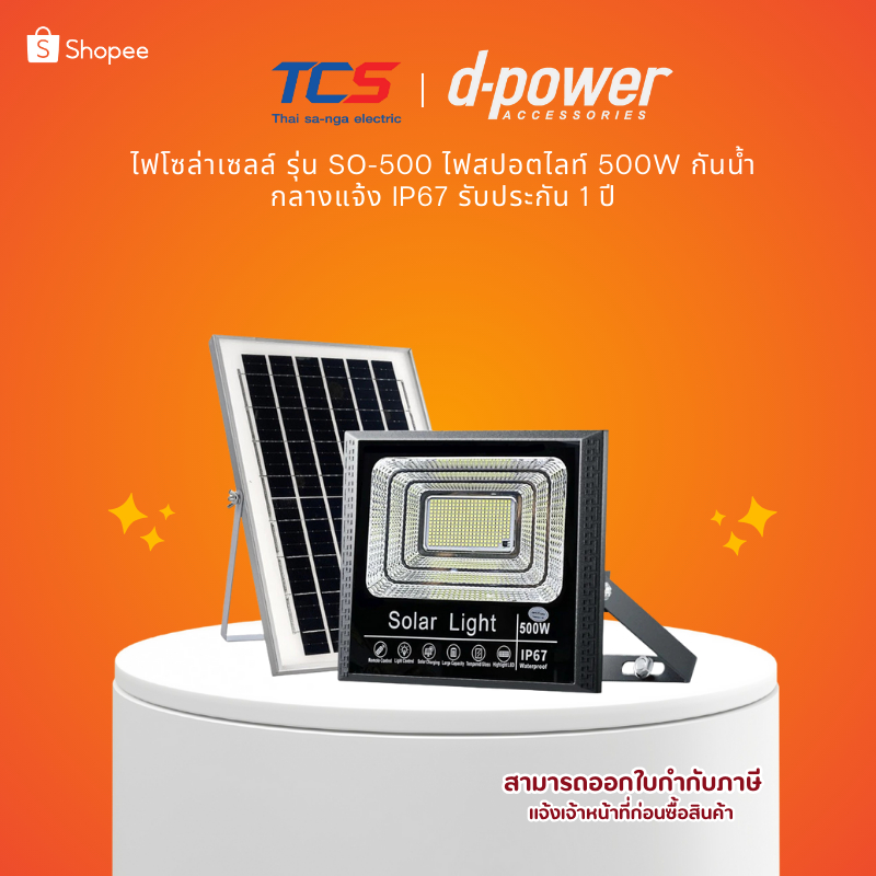 d-power ไฟโซล่าเซลล์ รุ่น SO-500 ไฟสปอตไลท์ 500W กันน้ำกลางแจ้ง IP67 รับประกัน 1 ปี