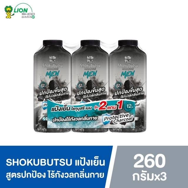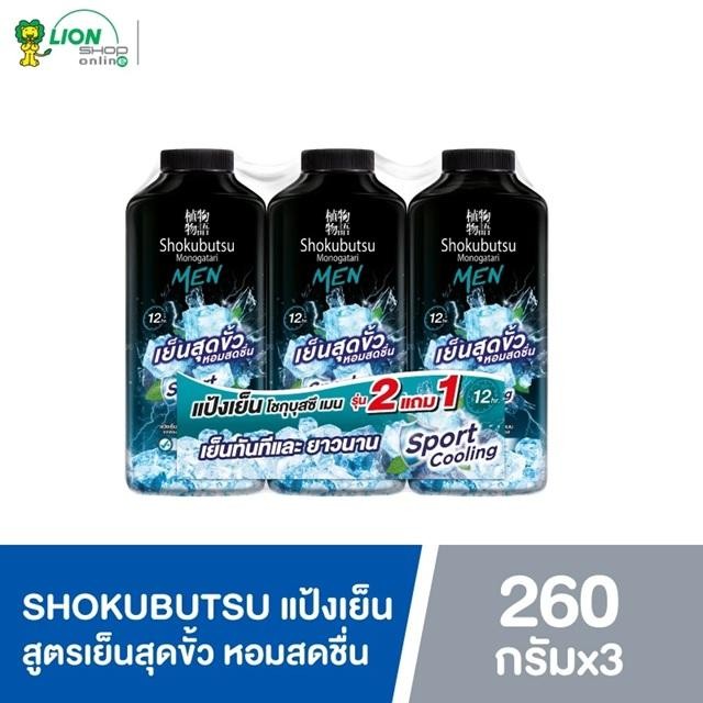 SHOKUBUTSU โชกุบุสซึ MEN TALCUM SPORT COOLING แป้งเย็น สูตรเย็นสุดขั้ว หรือ สูตรปกป้อง ขนนาด 260 กรัม 2 แถม 1 ( 3 ขวด )