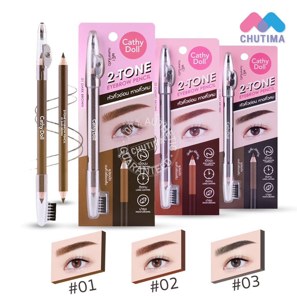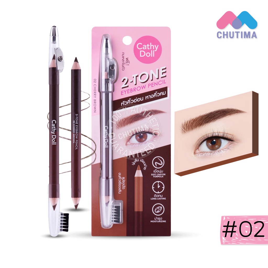 ดินสอเขียนคิ้ว เคที่ดอลล์ ดินสอเขียนคิ้วสองหัว 2 สีในแท่งเดียว มีกบเหลา Cathy Doll 2-Tone Eyebrow Pencil
