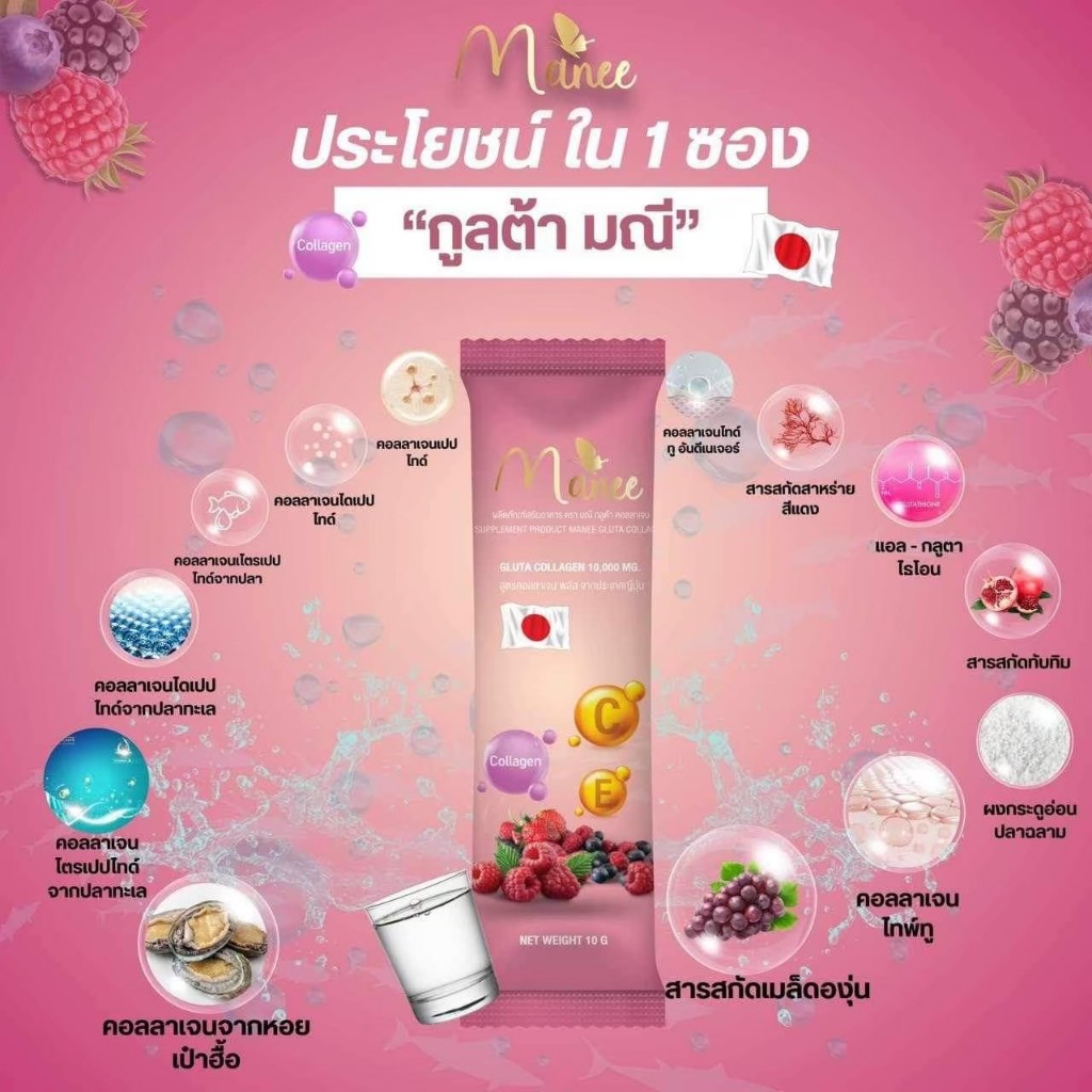 (ของแท้) คอลลาเจนมดซี่ มณี กลูต้า MANEE GLUTA COLLAGEN คอลลาเจนบำรุงผม ผิว เล็บ 1 ห่อ บรรจุ 30 ซอง