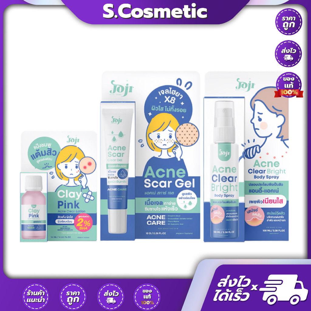Joji โจจิ ซีเคร็ท ยัง ผลิตภัณฑ์รักษาสิว เคลียร์ โลชั่น แต้มสิว 15 มล. / สการ์ เจล 10 ก. / ไบร์ท บอดี้สเปรย์ 100 มล.