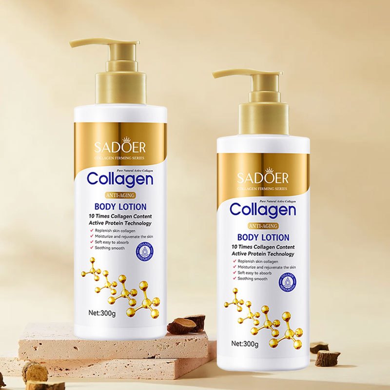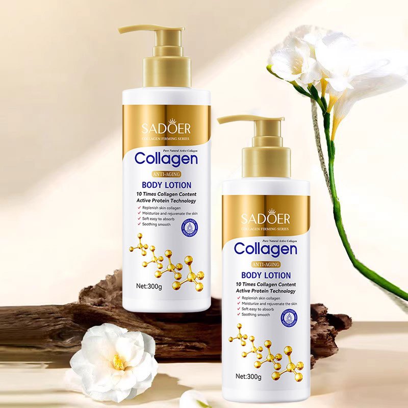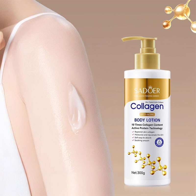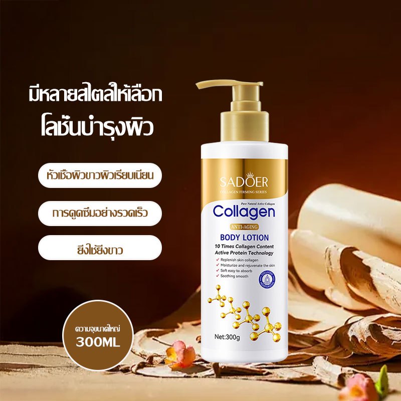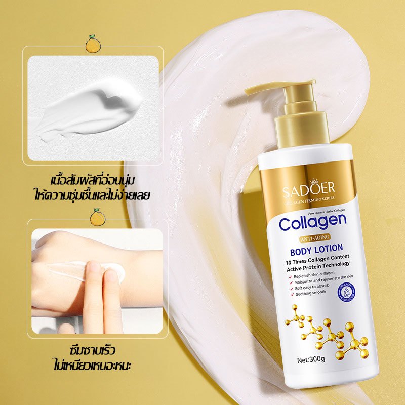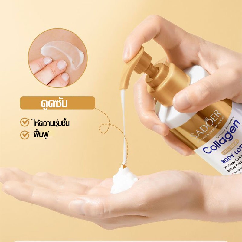 โลชั่นคอลลาเจนทองคำ ช่วยให้ผิวขาวกระจ่างใส เนียนนุ่ม ชุ่มชื้น 300ml SADOER Collagen Body Lotion-047