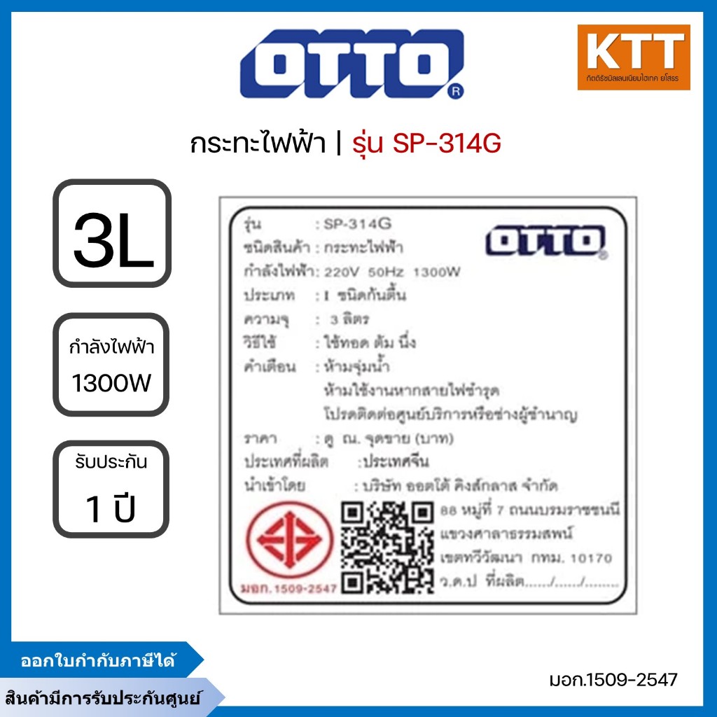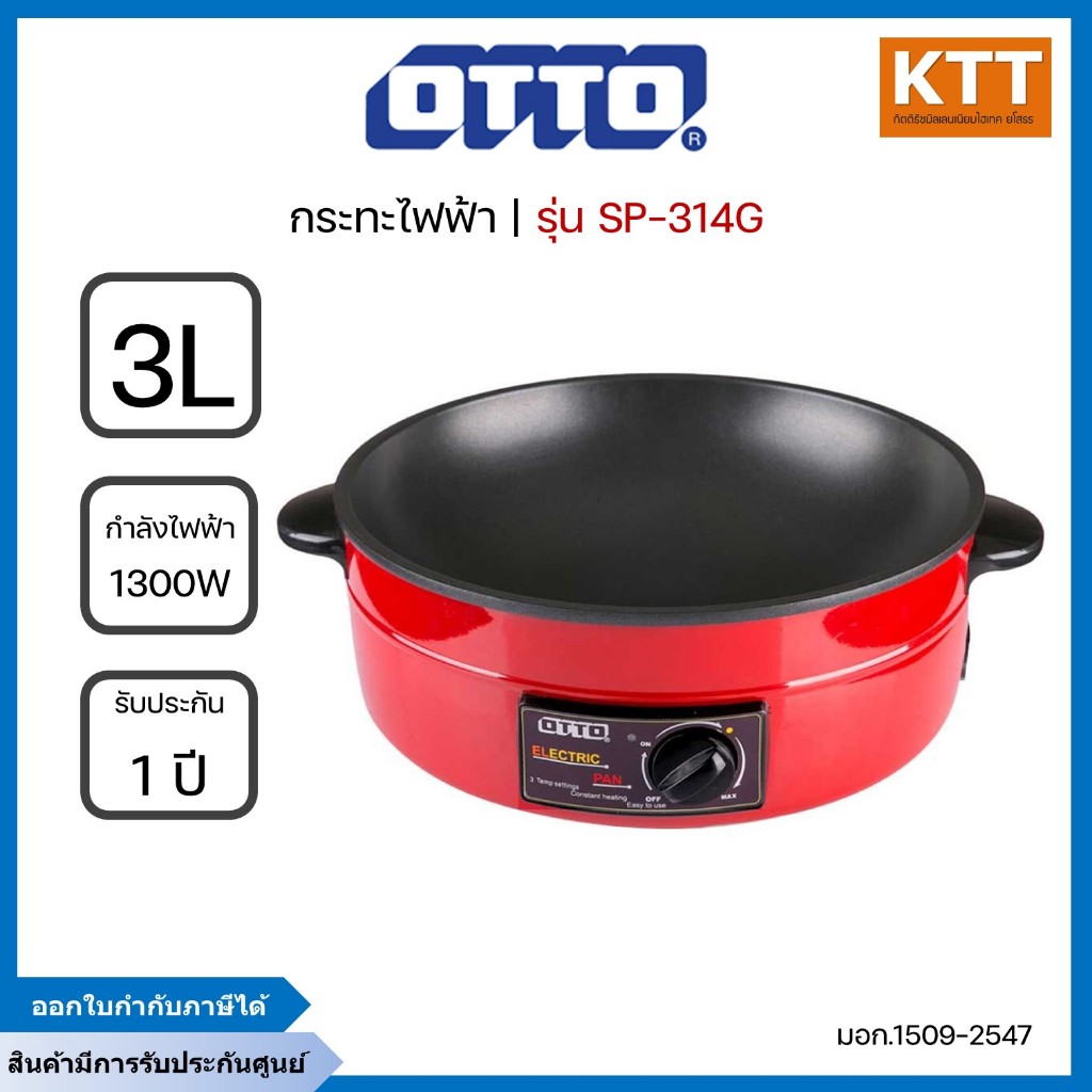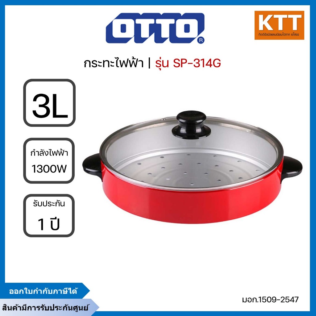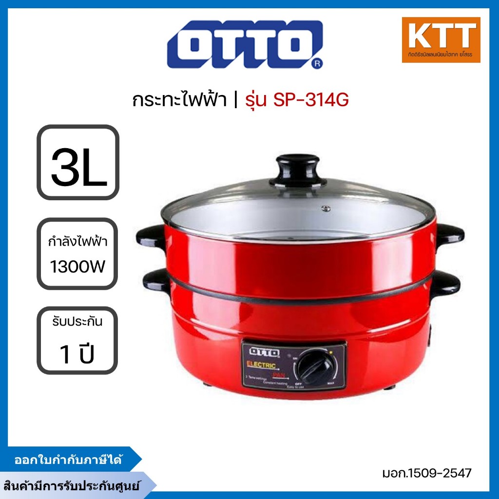 OTTO กระทะไฟฟ้า รุ่น SP-314G 3 ลิตร 1300W มี 2 ชั้น ฝาแก้วใส มีซึ้งนี่ง เคลือบเทฟล่อน