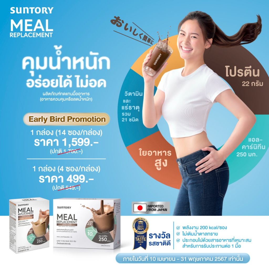 Suntory Meal Replacement Cocoa/Matcha/Coffee Latte Flavor [2 กล่อง][สินค้ามีให้เลือก 3]