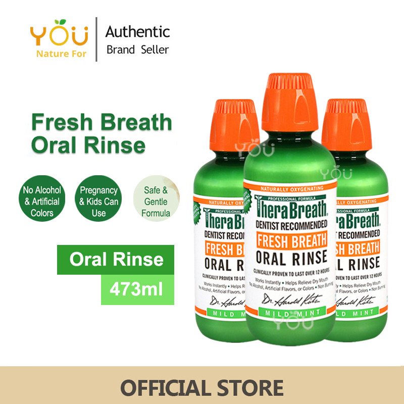 น้ำยาบ้วนปาก TheraBreath Oral Rinse 473ml สูตรปราศจากแอลกอฮอล์ Mild Mint✨
