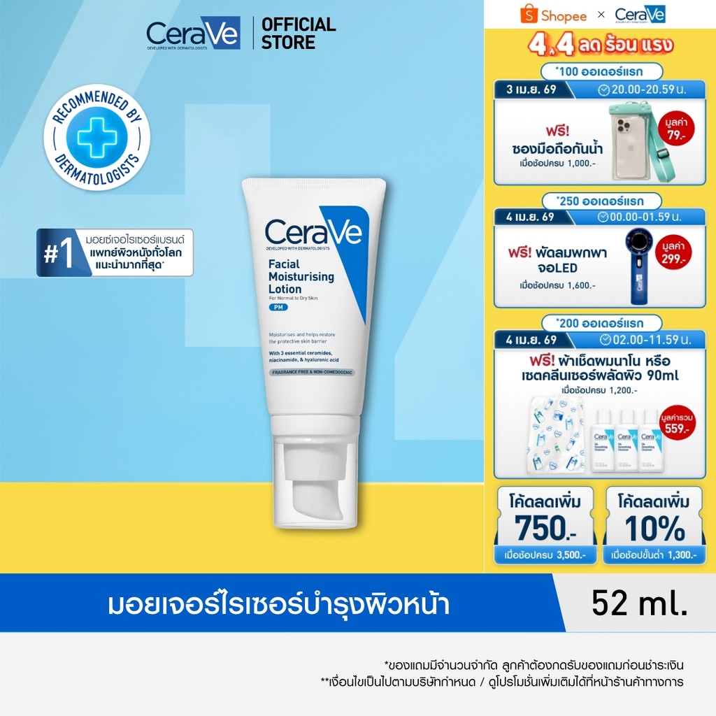 เซราวี CERAVE Facial Moisturising Lotion เฟเชี่ยล มอยเจอร์ไรซิ่ง โลชั่น โลชั่นบำรุงผิวหน้าสำหรับผิวธรรมดา 52ml.
