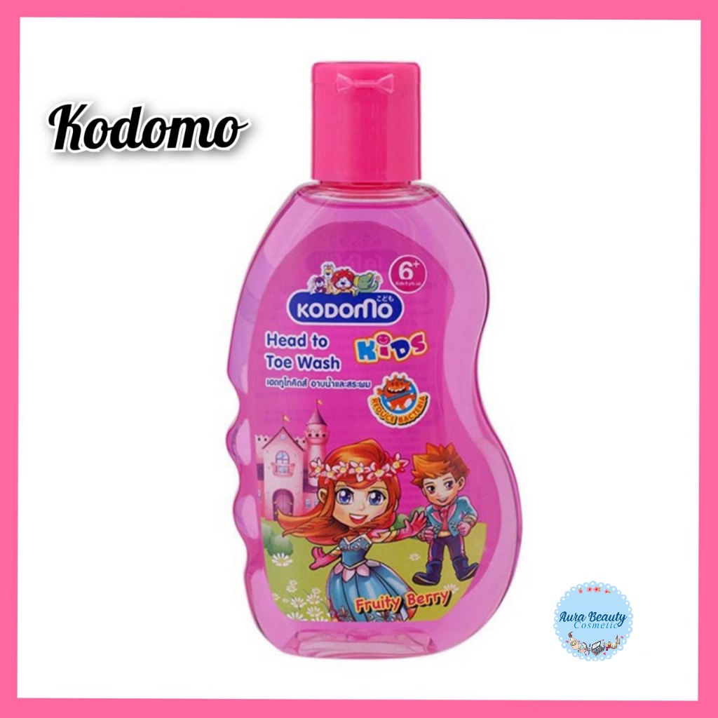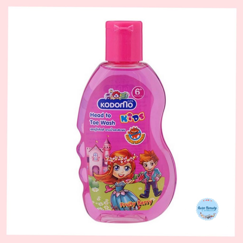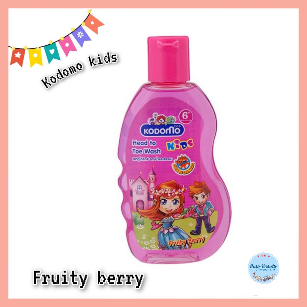 📍 (1ขวด) Kodomo Shampoo & Soap 100มล. โคโดโม แชมพูอาบน้ำ เฮดทูโท กลิ่นฟรุ๊ตตี้เบอร์รี่ สีชมพู
