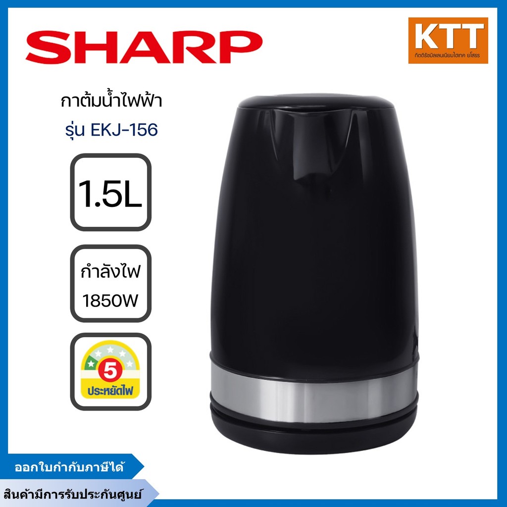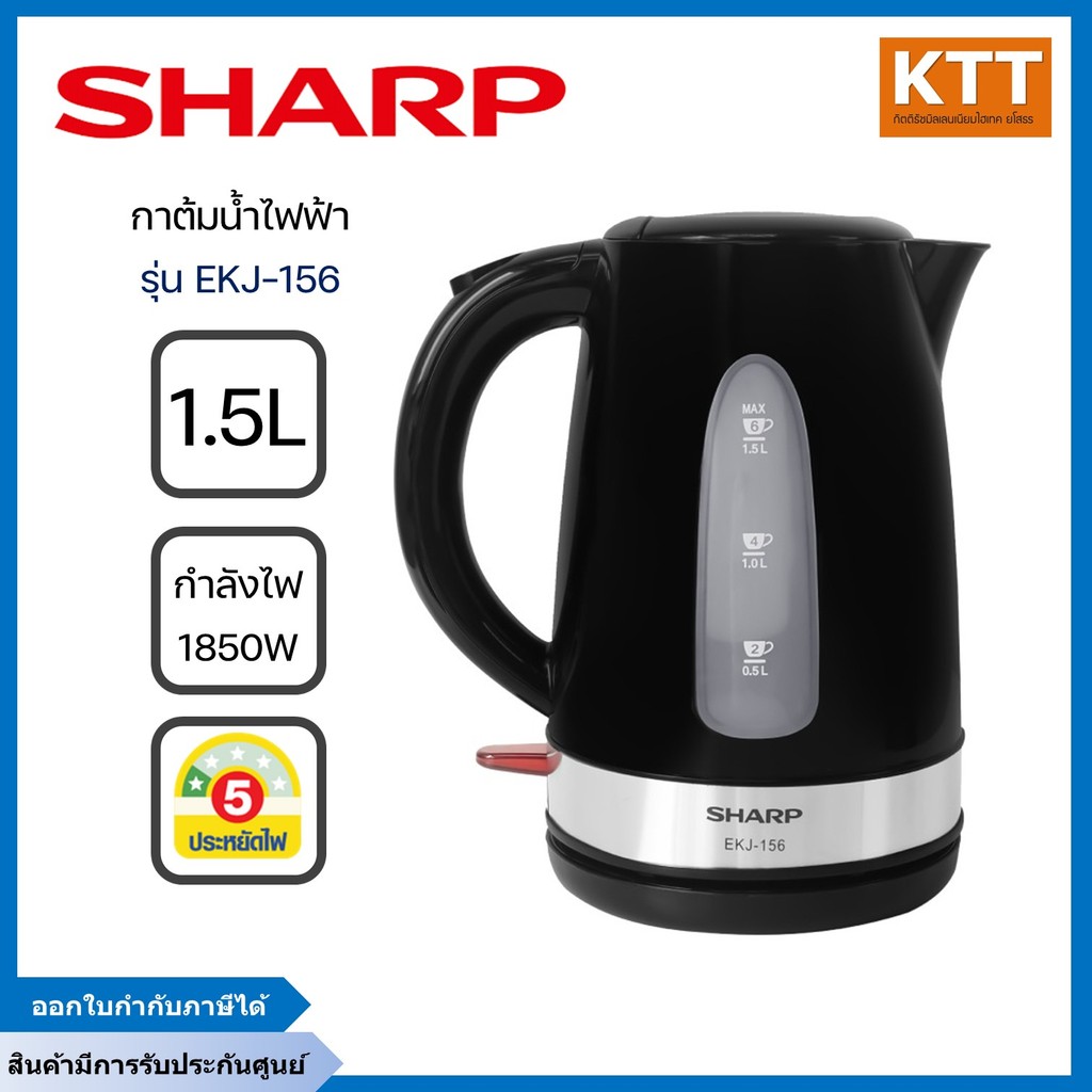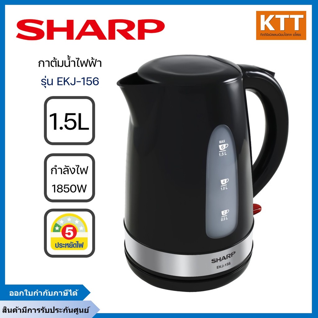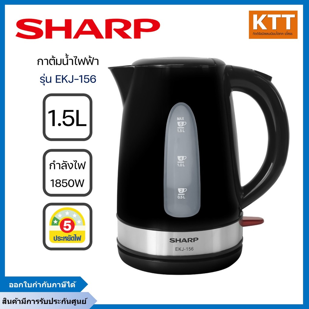 SHARP กาต้มน้ำ ไฟฟ้าชาร์ป รุ่น EKJ-156 ความจุ 1.5 ลิตร กำลังไฟฟ้า 1,850-2,200 วัตต์