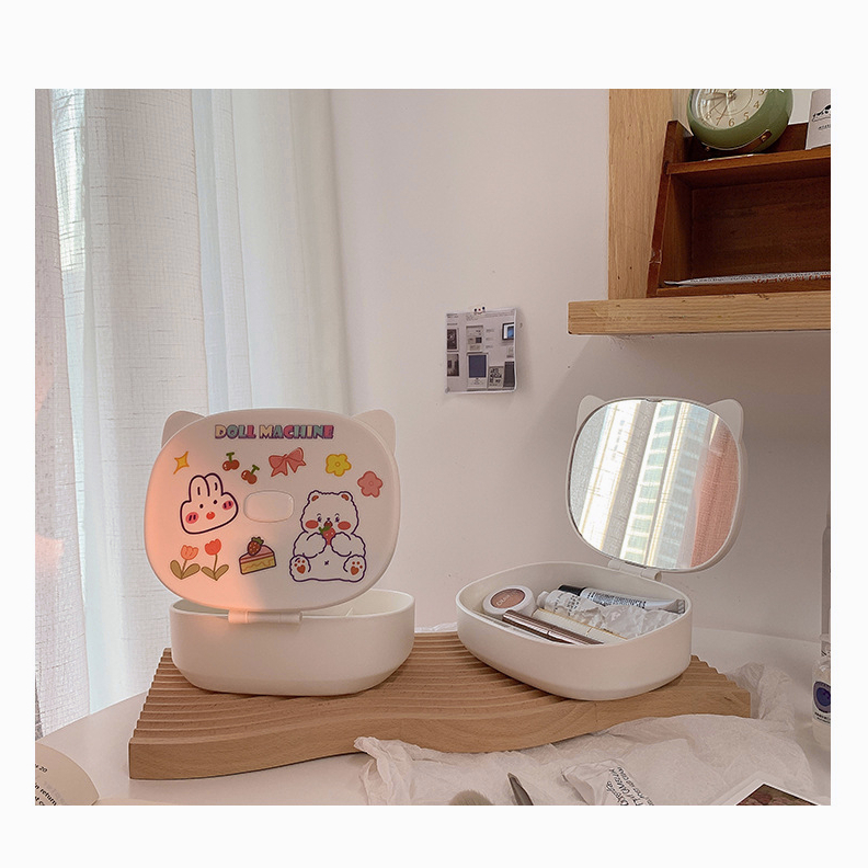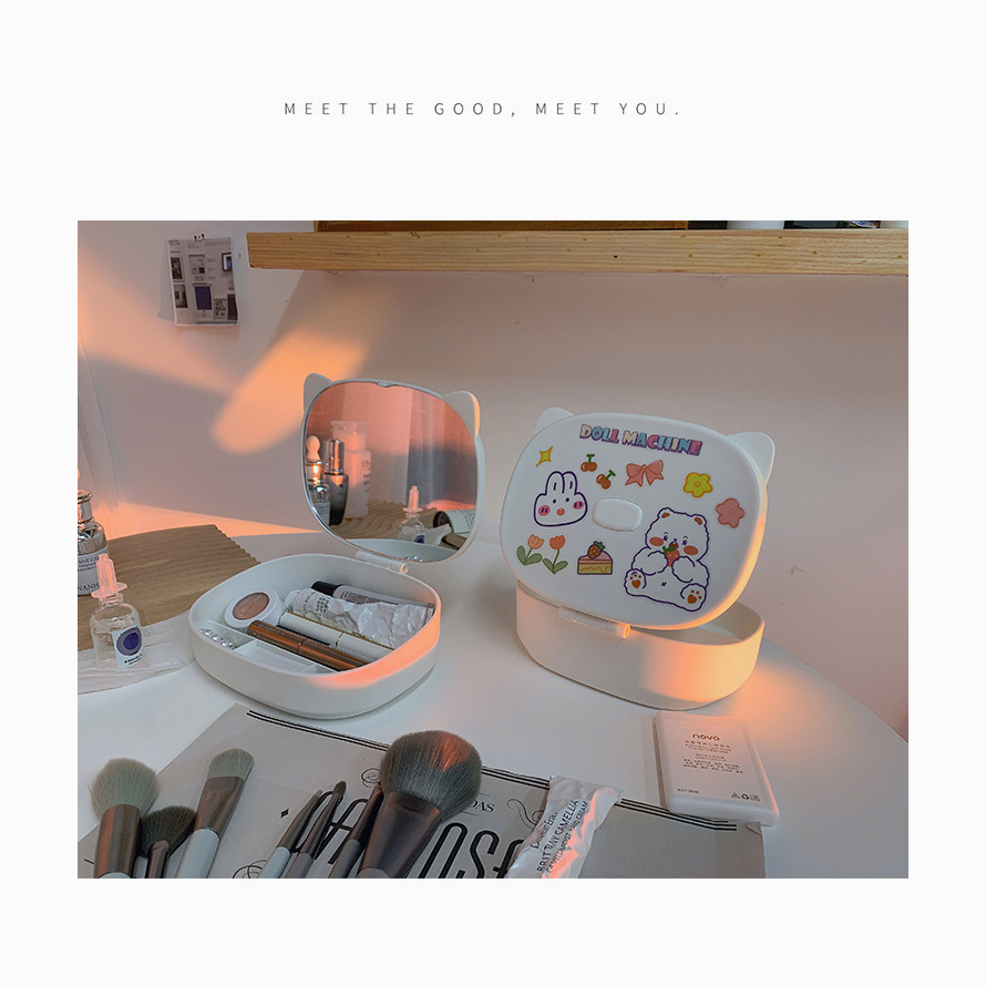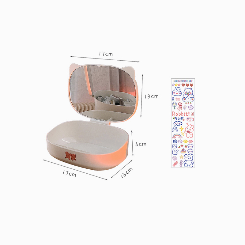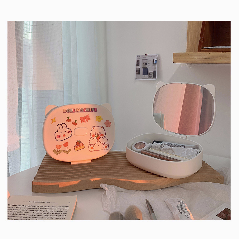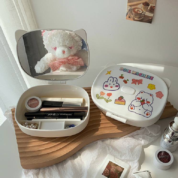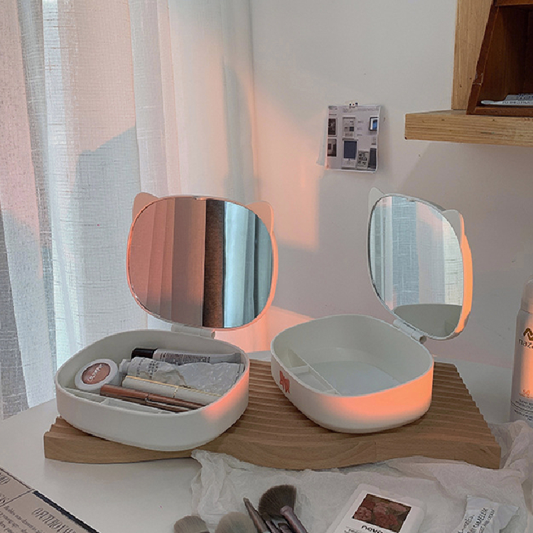 กล่องใส่เครื่องสำอาง กระจกแต่งหน้า มินิมอล ชั้นวางเครื่องสำอาง วัสดุABS สามารถพับ แจกสติ๊กเกอร์ กล่องเก็บของ