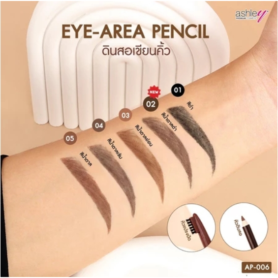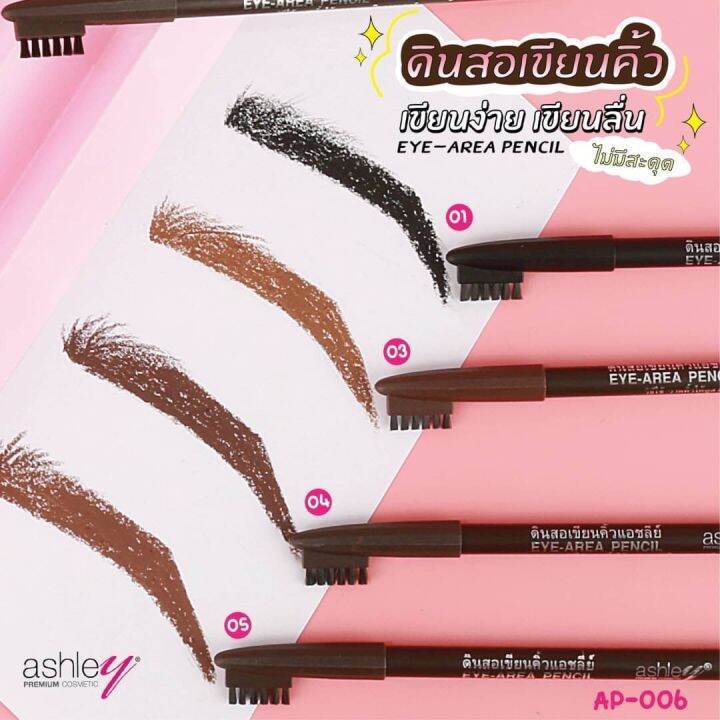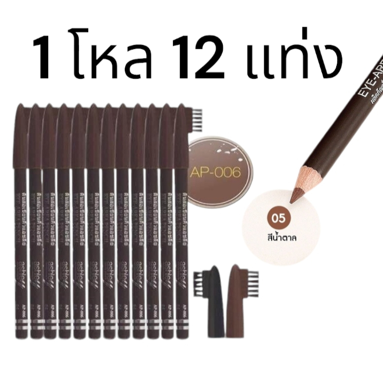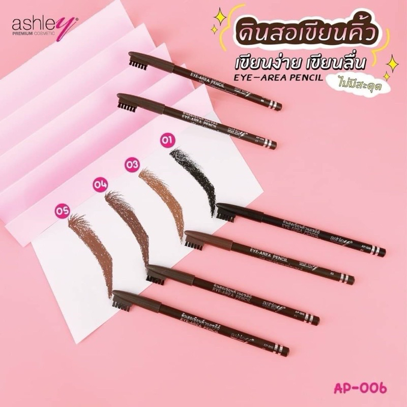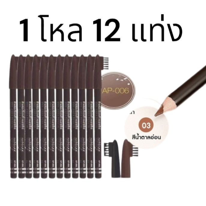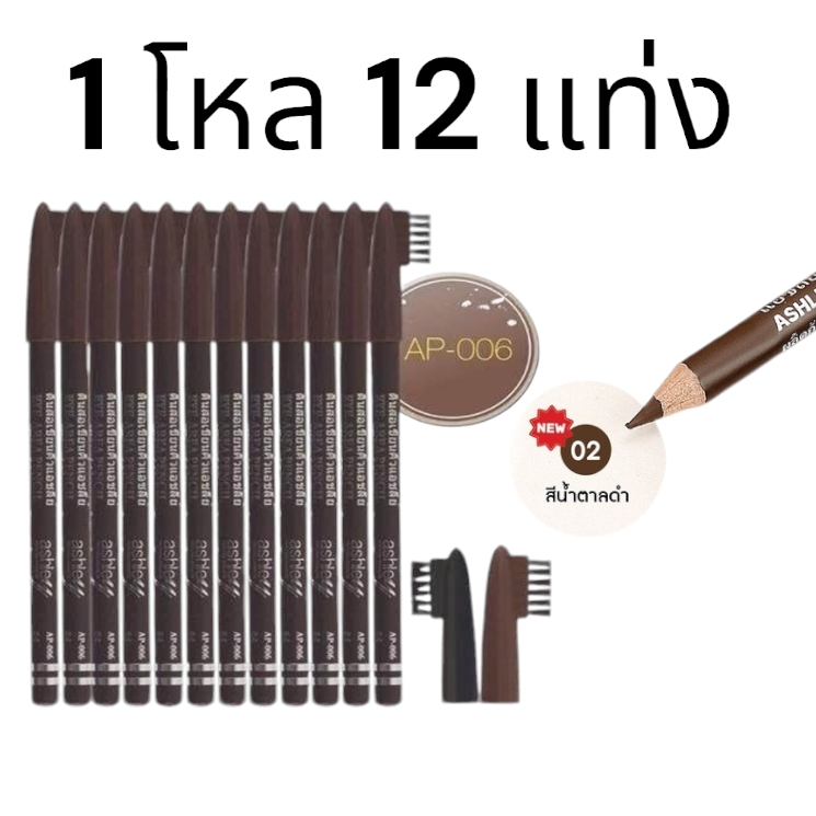 ดินสอเขียนคิ้ว Ashley ดินสอเขียนคิ้วพร้อมแปรง แบบเหลา รุ่น AP-006 เนื้อนุ่ม (1 โหล 12 แท่ง)