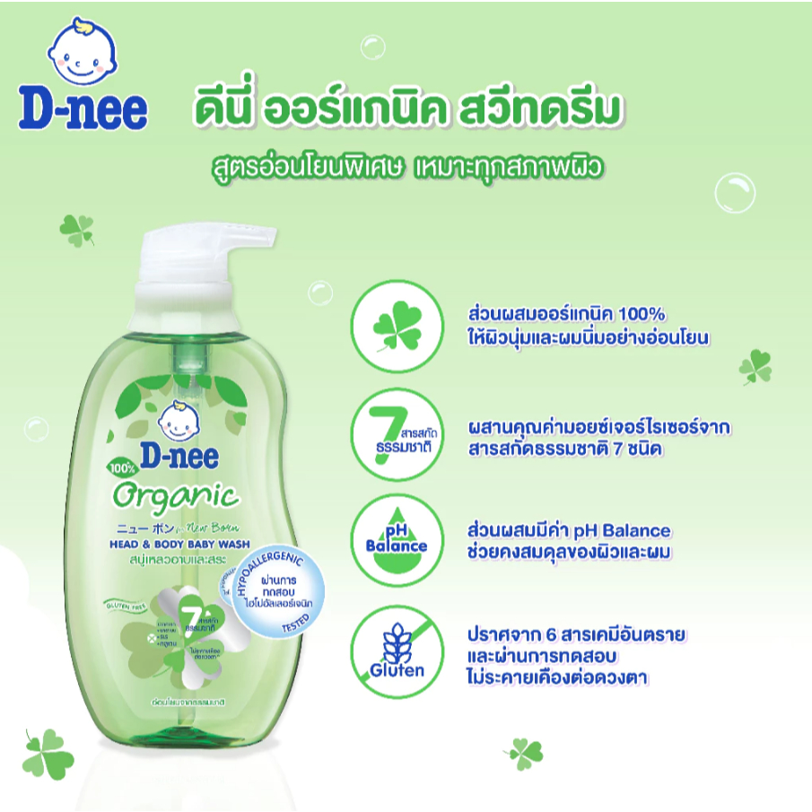 D-nee Organic Head & Body Baby Wash ดีนี่สบู่เหลวอาบน้ำและสระผม สูตรออร์แกนิค (380 มล.)