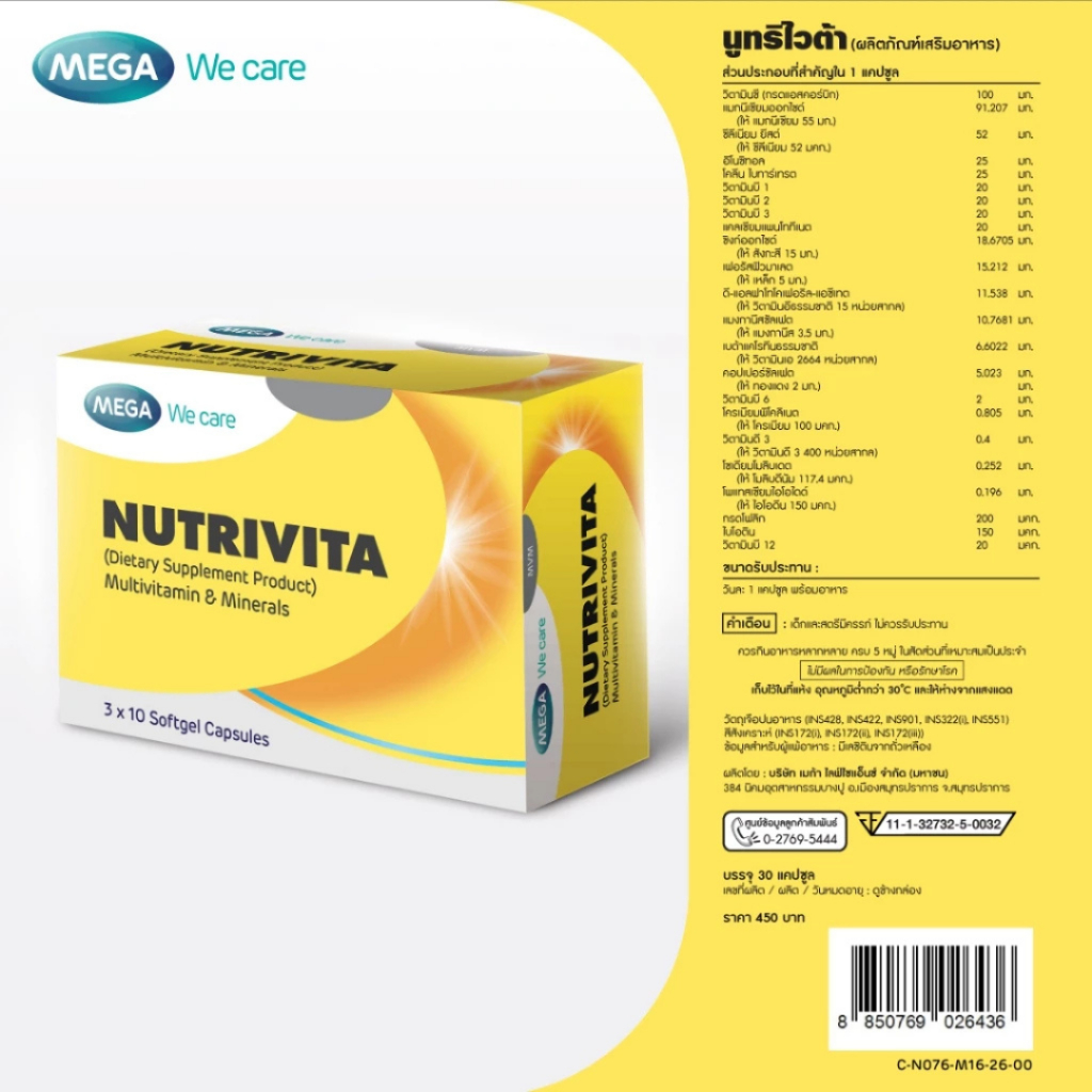 ผลิตภัณฑ์เสริมอาหาร Mega wecare NAT B / Nutrivita แนทบี แคปซูล วิตามินบี รวม เมก้าวีแคร์ 1กระปุก #L1