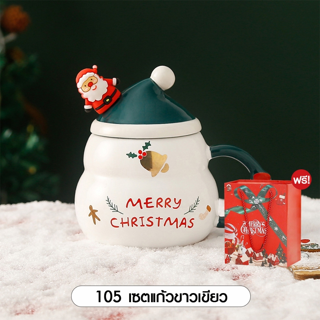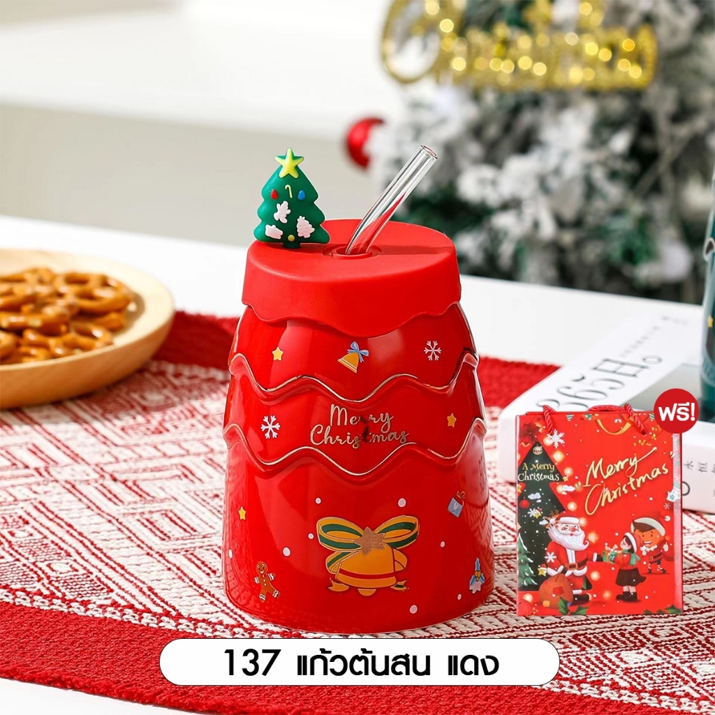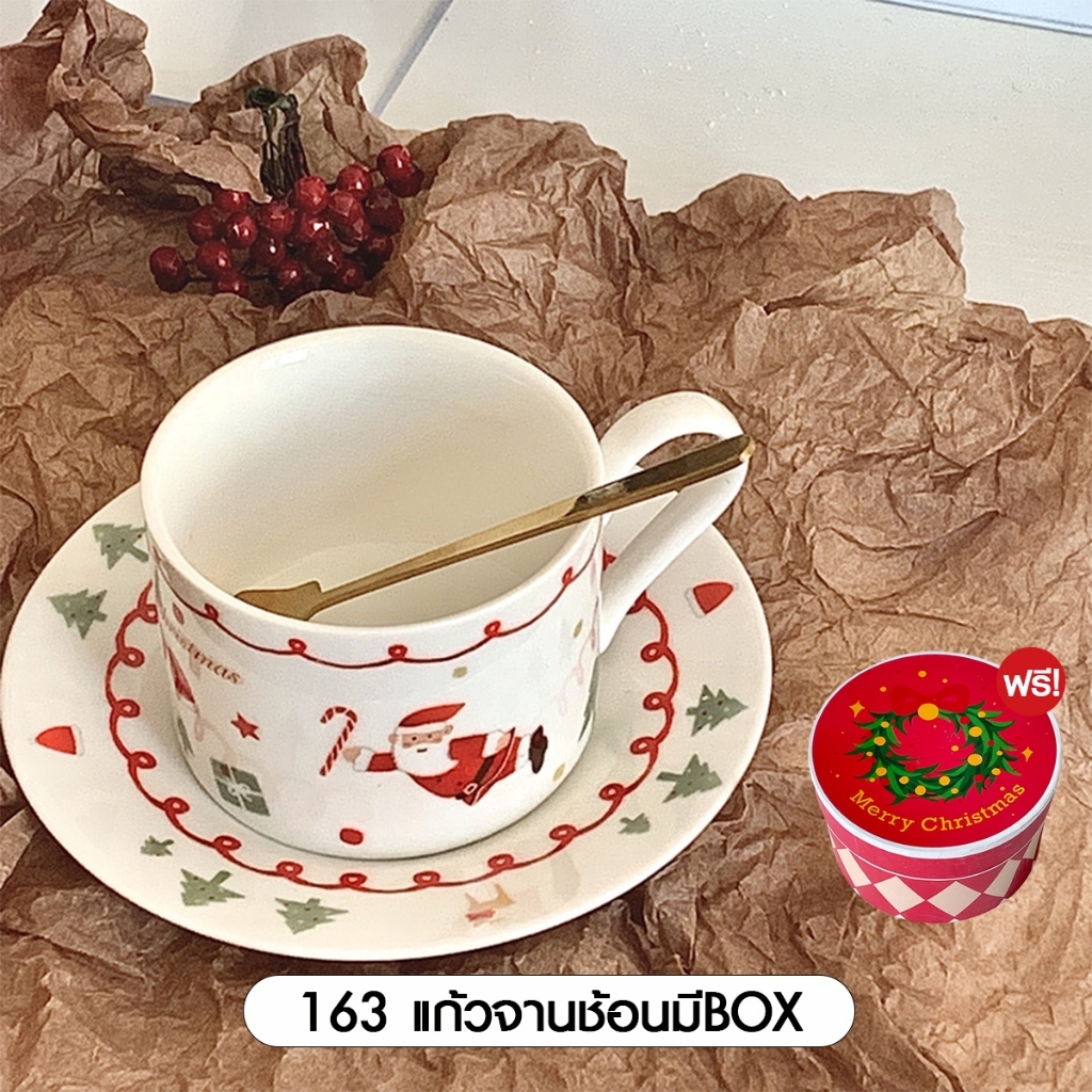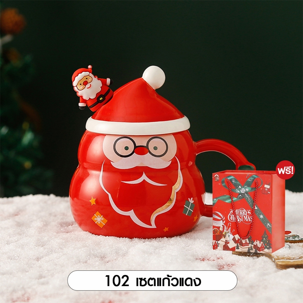 [SALE] Christmas Glass Set Xmas ชุดแก้วพร้อมจี้ คริสต์มาส ถ้วยชา ของขวัญปีใหม่ เทศกา ล แก้วมัค เซรามิก ซานต้า 1เซต