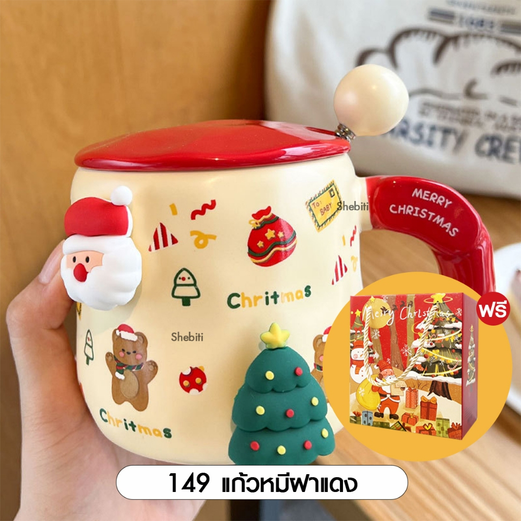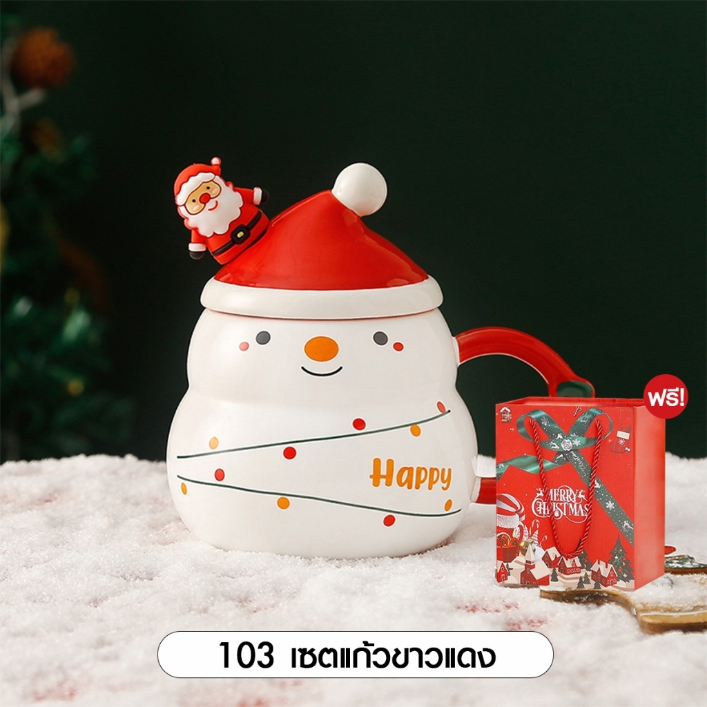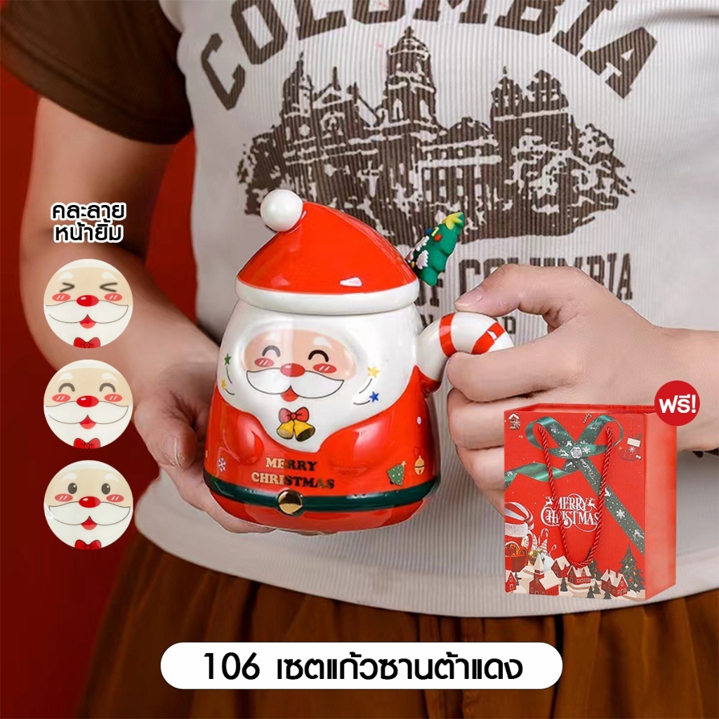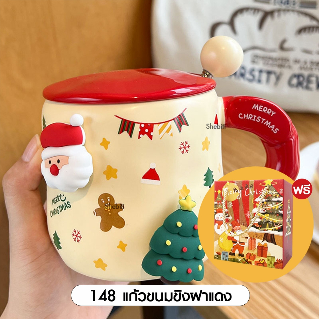 [SALE] Christmas Glass Set Xmas ชุดแก้วพร้อมจี้ คริสต์มาส ถ้วยชา ของขวัญปีใหม่ เทศกา ล แก้วมัค เซรามิก ซานต้า 1เซต