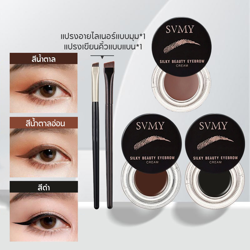 SVMY เซทอายไลน์เนอร์เจล 3 สี รวมแปรง 2 ชิ้น เจลไลเนอร์+เจลคิ้ว สีน้ำตาลและดำ สูตรกันน้ำ/เหงื่อ 24 ชม