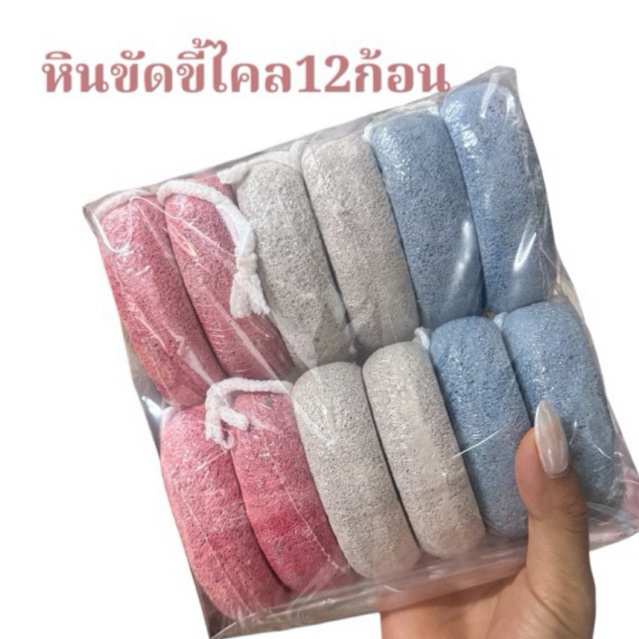 หินขัดขี้ไคล 12 ก้อน (ผิวใสสะอาด เหมือนเกิดใหม่) ขัดขี้ไคลสะใจ ผิวเนียนใสแบบธรรมชาติ ช่วยผลัดเซลล์ผิวที่ตายแล้ ว