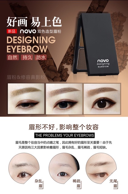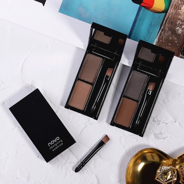 novo 5088 ที่เขียนคิ้วตลับ โนโว Makeup 2in1 Eyebrow Powder คิ้วฝุ่นอัดแข็งตลับ กันน้ำ สไตล์เกาหลี