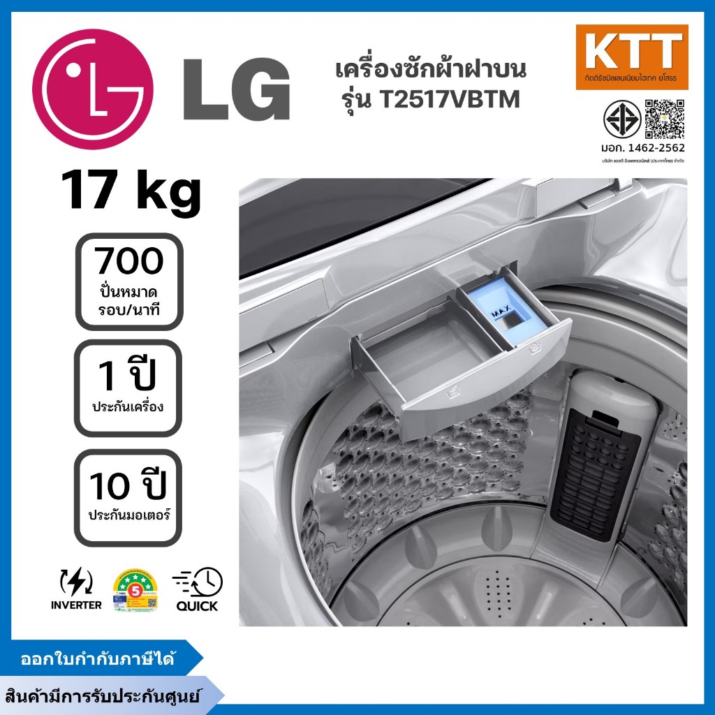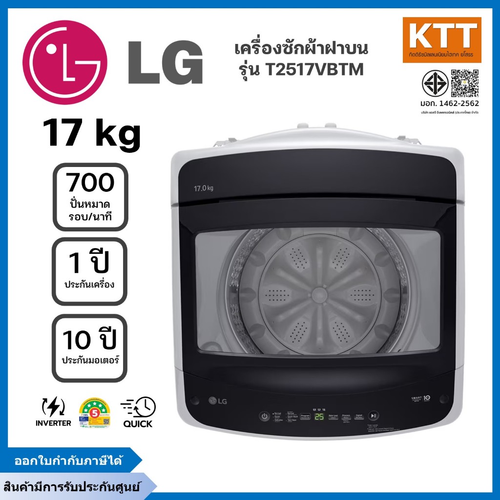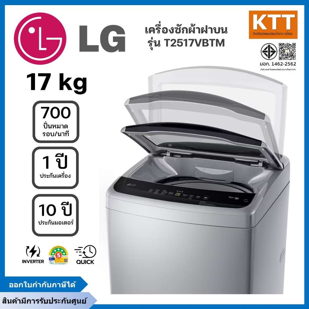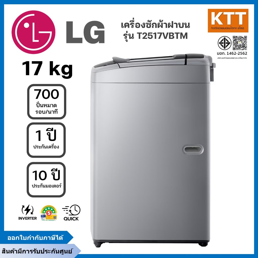 LG เครื่องซักผ้าฝาบน ขนาด 17 กก. รุ่น T2517VBTM ระบบ Smart Inverter สีเทา