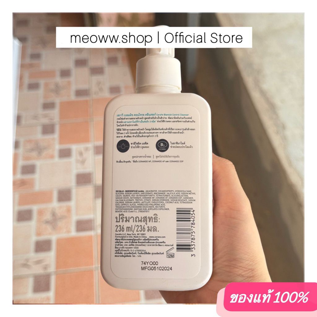 1 Pcs. [ 236 / 473ml. ] เซราวี CERAVE BLEMISH CONTROL CLEANSER เจลทำความสะอาดผิวหน้า สูตรสำหรับผิวเป็นสิวง่าย
