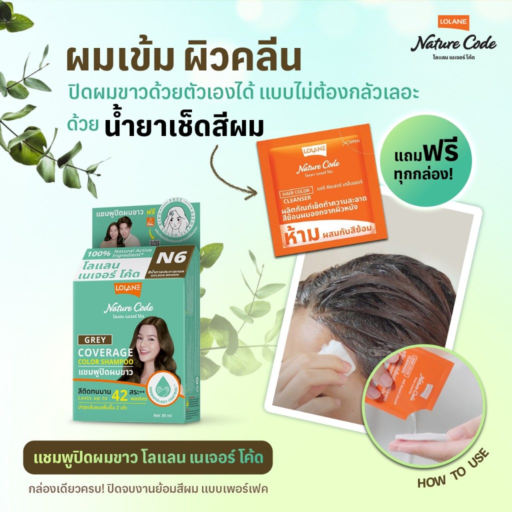 แชมพูปิดผมขาว โลแลน เนเจอร์ โค้ด Lolane Nature Code Coverage Color Shampoo