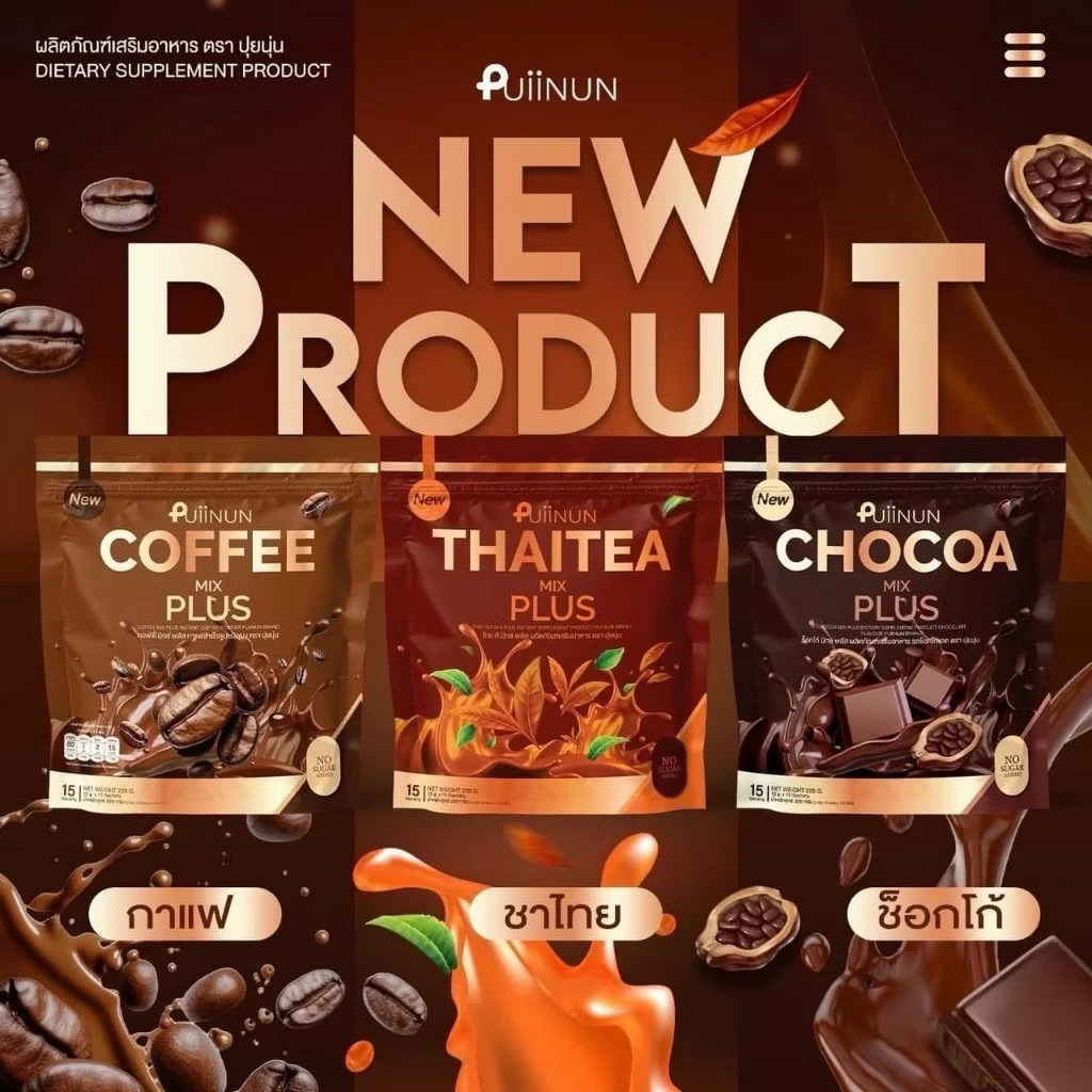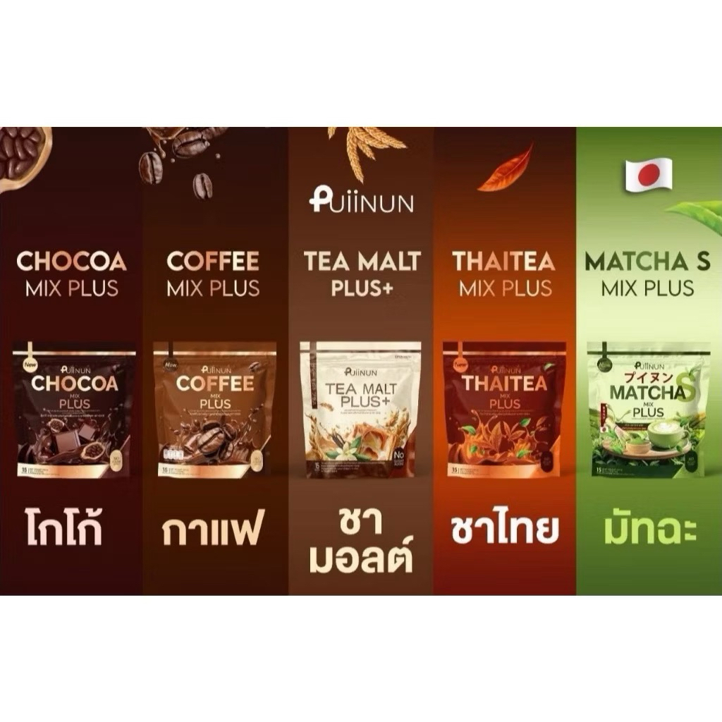 ปุยนุ่นกาแฟ/โกโก้ปุย/ชาไทย/คอลลาเจน/ไฟเบอร์/ชาเขียว/ชามอลต์/นมชมพู รุ่นใหม่ 15 ซอง มี 8 รสชาต