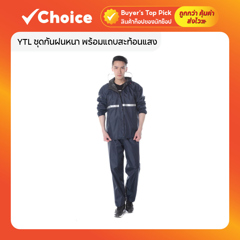 YTL ชุดกันฝนหนา พร้อมแถบสะท้อนแสง หมวกแนบเสื้อ สีดำ บาง ขนาด XXL
