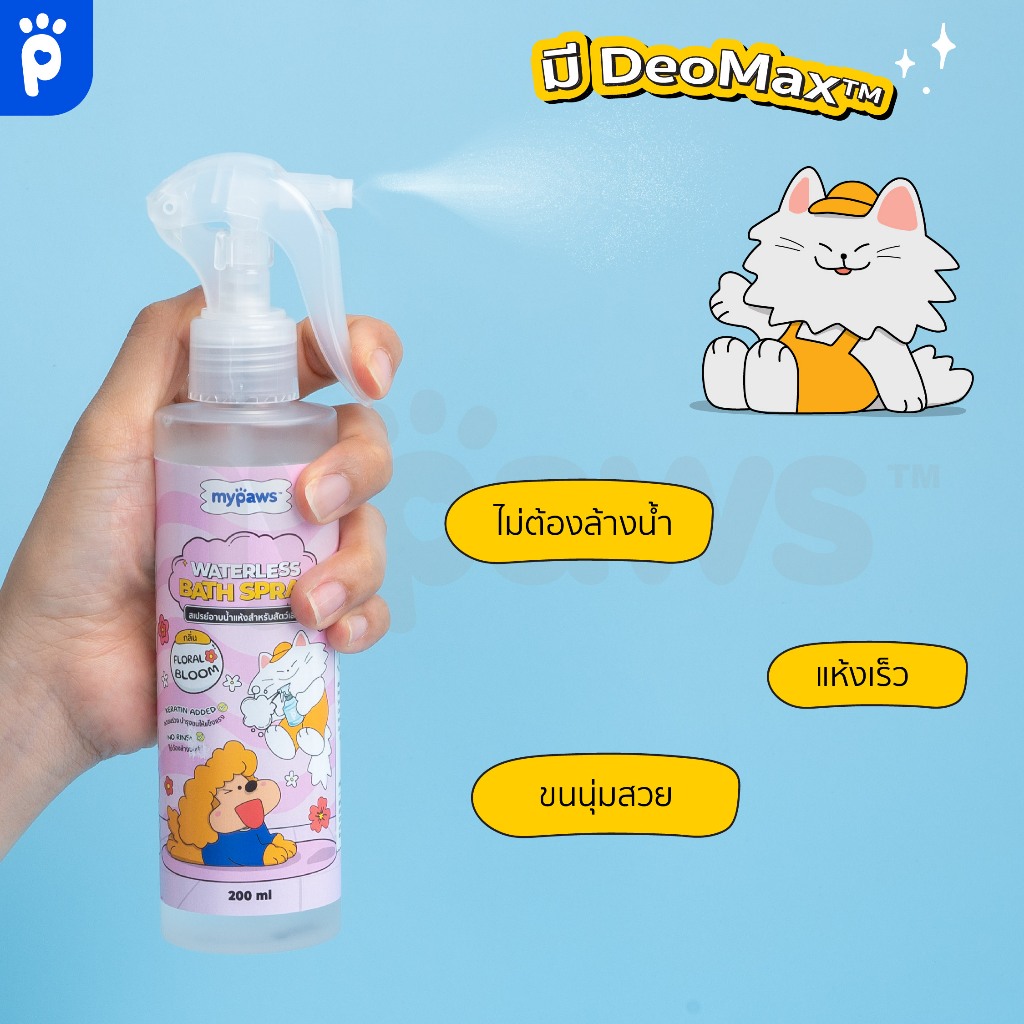 [🔥4.4 ลดสูงสุด 450.-]My Paws สเปรย์อาบน้ำแห้ง ลดกลิ่นเหม็น บำรุงขนและผิวหนัง อ่อนโยน ผิวแพ้ง่ายใช้ได้ dry shampoo 200ml.