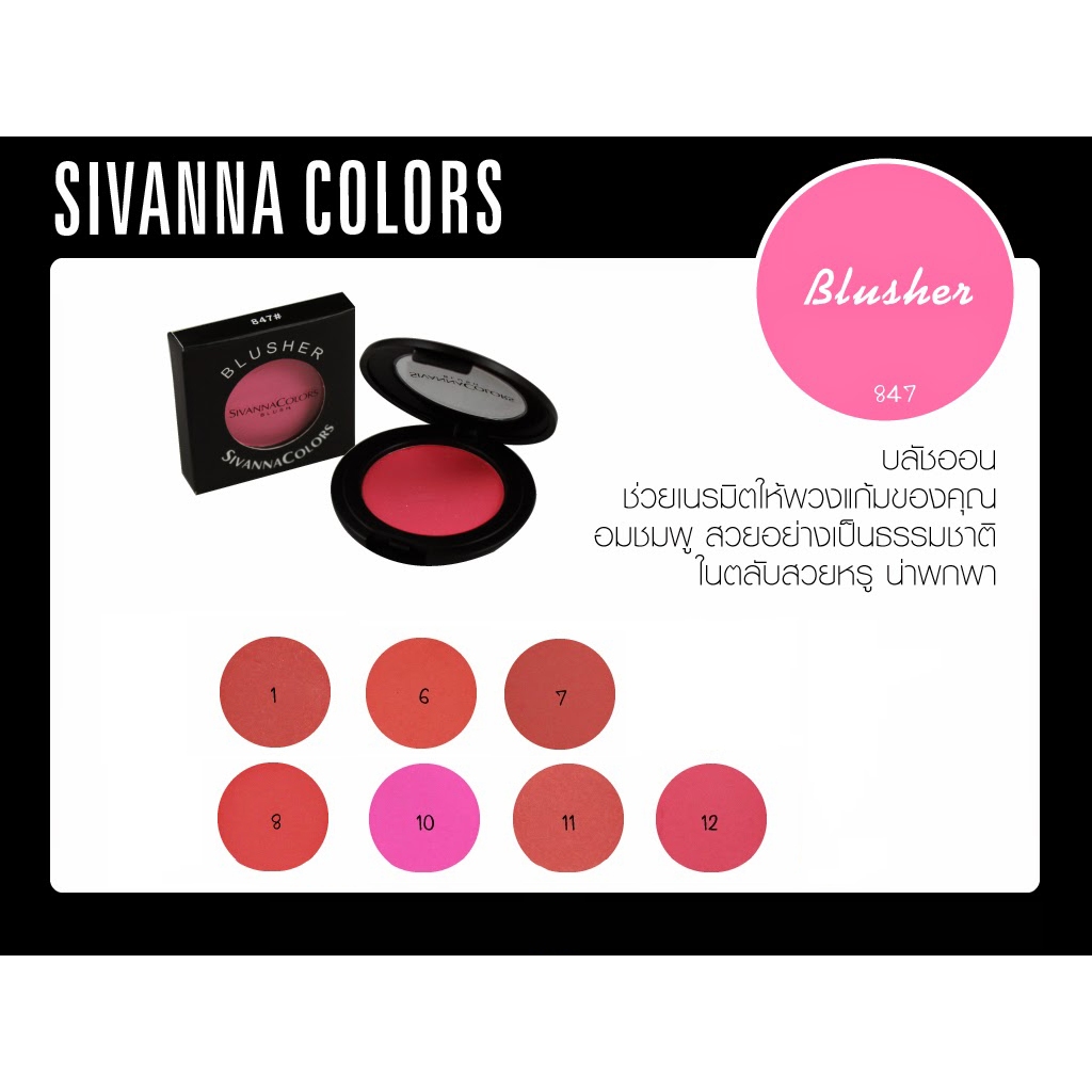 Sivanna Colors Blusher 847 บลัชออน ปัดแก้ม เนื้อฝุ่น มีทั้งหมด 12 เฉดสี ติดทนนาน สีสันสดใส
