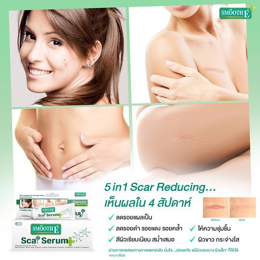 Smooth E เซรั่มลดรอยแผลเป็น รอยดำ รอยแดง ผิวหน้าและผิวกาย Scar Serum Advance Formula (Face And Body) 10G. สมูทอี sca