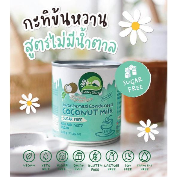 Nature's Charm เนเจอร์ชาร์ม นมมะพร้าวข้นหวานสูตรไม่มีน้ำตาล Sugar Free Condensed Coconut Milk 320g